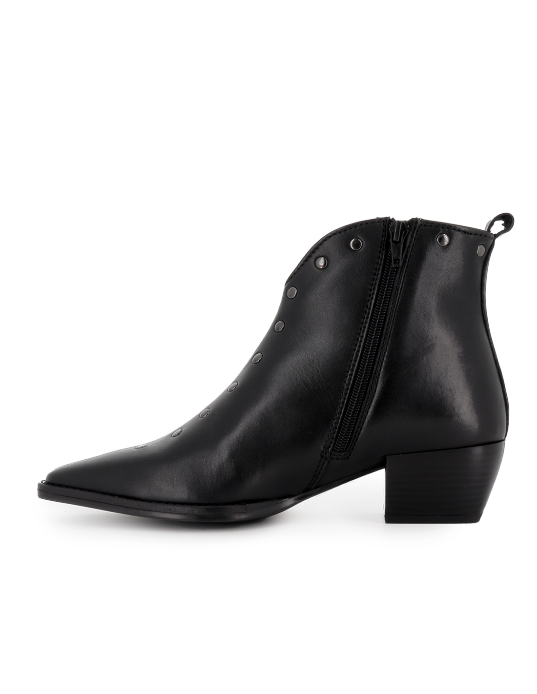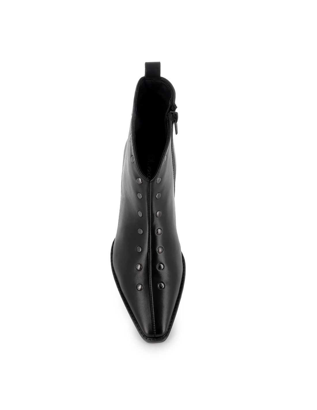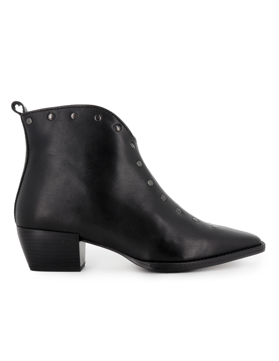 Botin piel lisa corte corazon tachas y cremallera mujer negro. Botin fabricado en piel lisa con diseño irregular formando corte corazon y detalle de tachas desde el empeine hasta el talon. Este botin cierre mediante cremallera interna y cuenta con un tacon cubano bajo muy util para todos los dias. PEPE PARRA es una marca de calzado española. Especializado en calzado casual y de vestir para mujer, sus diseños combinan las últimas tendencias con materiales de gran calidad, como pieles naturales, plantillas acolchadas y de gel, o suelas de goma flexible, para que vayas perfecta y cómoda en cada ocasión con un zapato que destaca por su calidad, autenticidad y cuidado de los detalles.