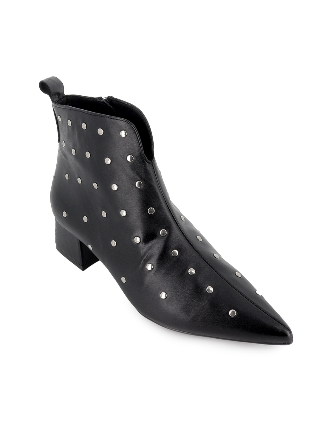 Botin piel irregular con tachas cremallera mujer negro. Botin fabricado en piel suave de corte irregular con diseño de tachas y cierre mediante cremallera lateral. Punta finay tacon medio, que resulta muy trendy. Son unos zapatos que te ayudaran a aportar un toque trendy a tu look. DESIREÉ SHOES es una marca que diseña y fabrica 100 % en España, con una amplia trayectoria en el calzado para mujer. La comodidad y la moda siempre son sus metas: Pisos flexibles y cómodos, plantillas de gel, pieles suaves de gran calidad y diseños sobrios y versátiles que combinen con todas tus prendas y duren varias temporadas.