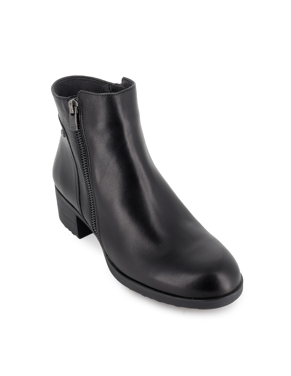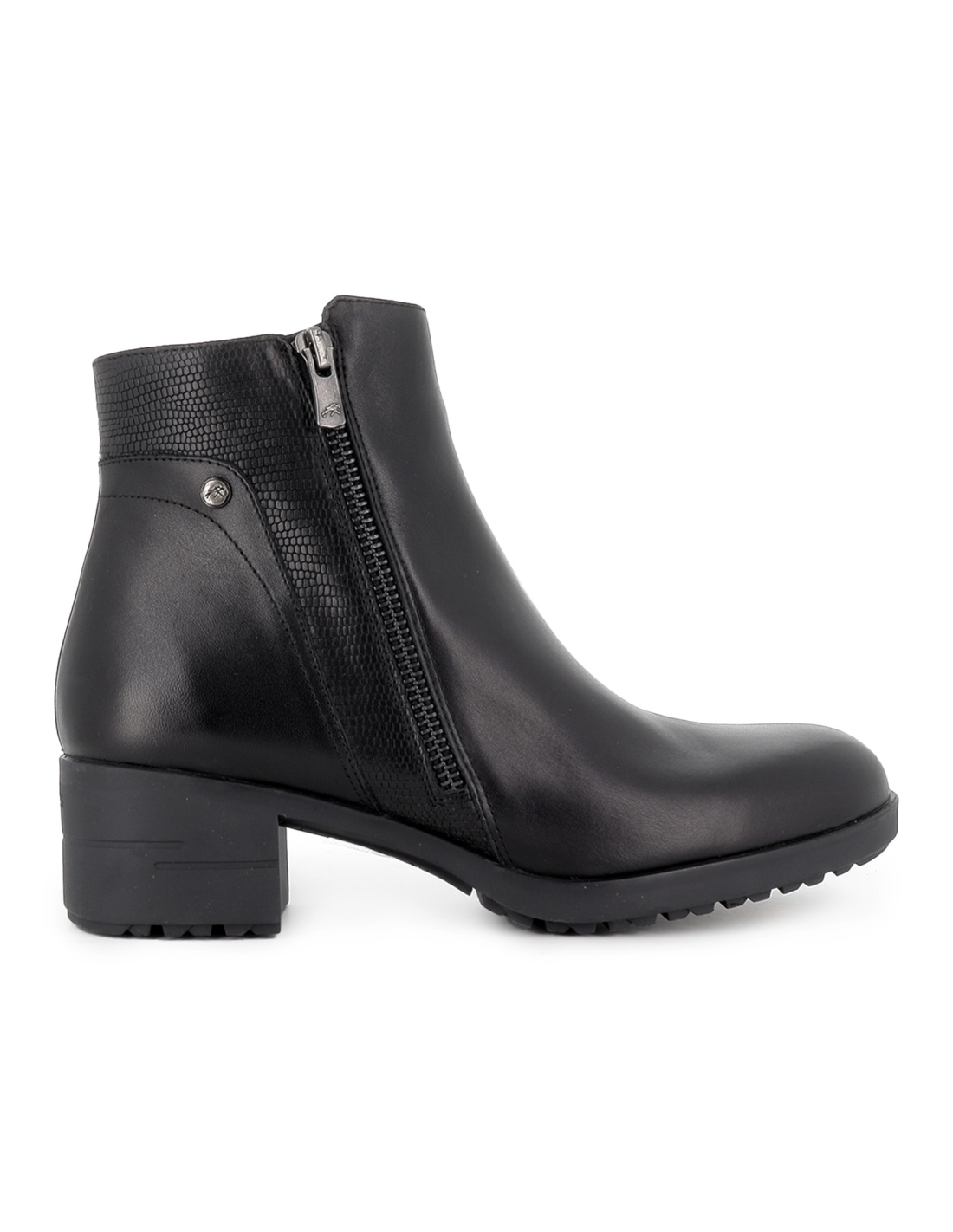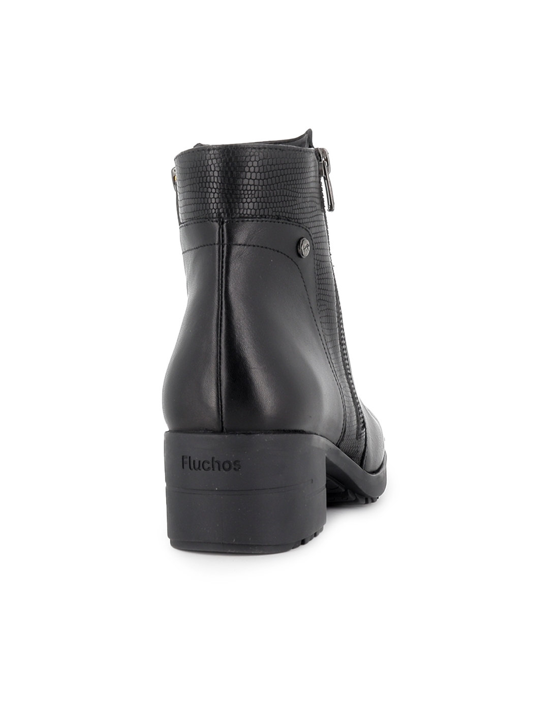 Botines piel combinada cremallera y tacon grueso mujer cuero. Botines fabricados en piel de vacuno de calidad superior con diferentes acabados combinados y cierre de cremallera lateral. Suela de goma termoplástica resistente y adherente con tacon grueso de altura media. Botines de estilo actual y muy ponibles, perfecto para un sinfin de ocasiones. FLUCHOS es una marca española líder en el mercado internacional. Sus estandartes son ofrecer un calzado cómodo, de calidad y 100 % HECHO EN ESPAÑA, que incluyan las tecnologías más avanzadas, como Air System Fluchos, Shock Absorber y Air Confort System. Todo para conseguir un calzado más ligero, que regule la temperatura, impermeable y flexible.