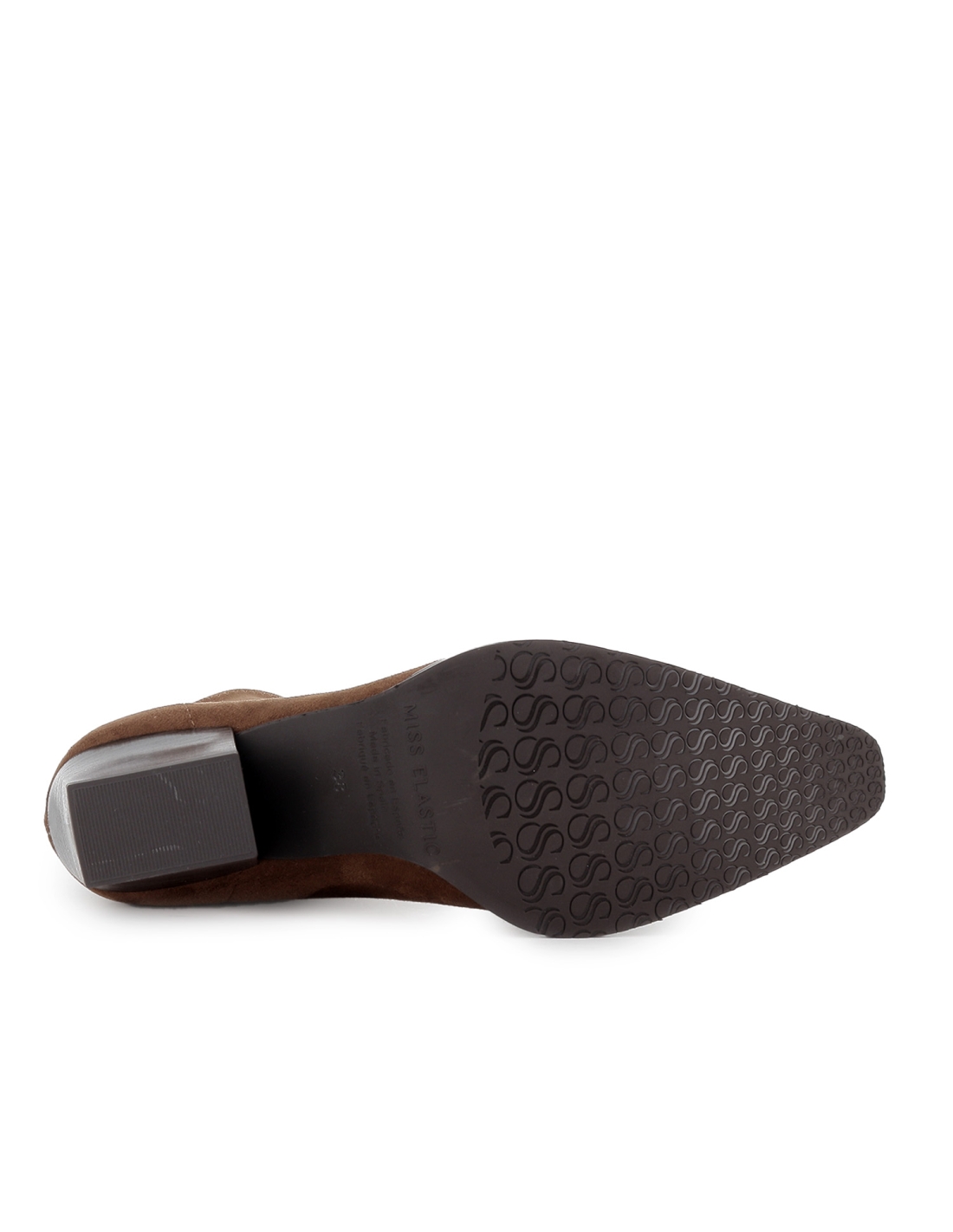 Botin tejano ante elastico tacon cubano slip-in mujer marron. Botín de estilo tejano fabricado en ante elastico con puntera afinada que tiene acabado calcetin. Botin con cierre slip-in y tacon ancho de estilo cubano. Un zapato perfecto para completar tus looks de diario. Miss elastic tiene centralizada su fabricación en España 100% y utilizan licras de primerísimas calidades. Las hormas usadas destacan por su calce perfecto y su ajuste al pie. Siempre en tendencias ya que fabrican modelos de diferentes estilos, ¡encontrarás tu zapato favorito!
