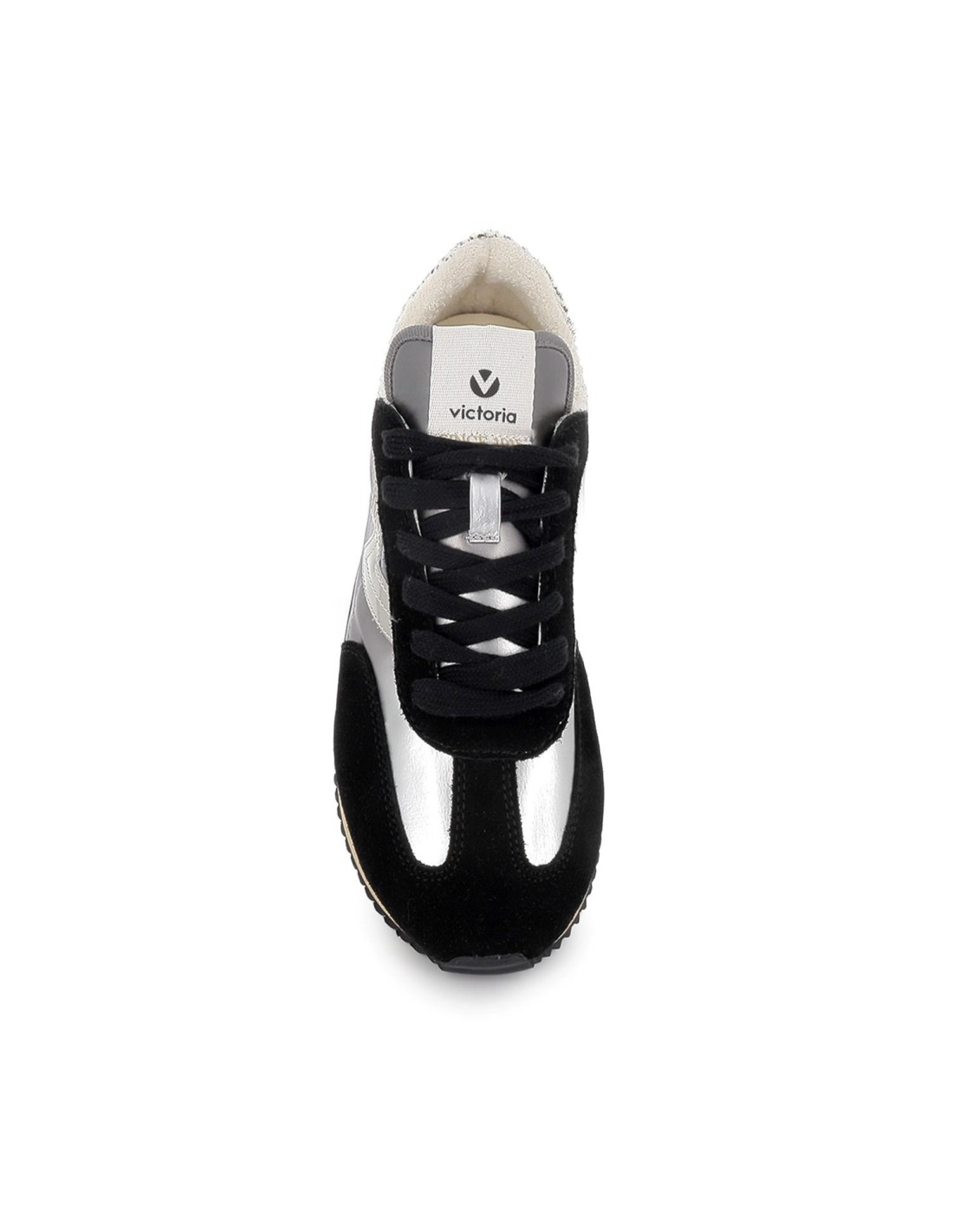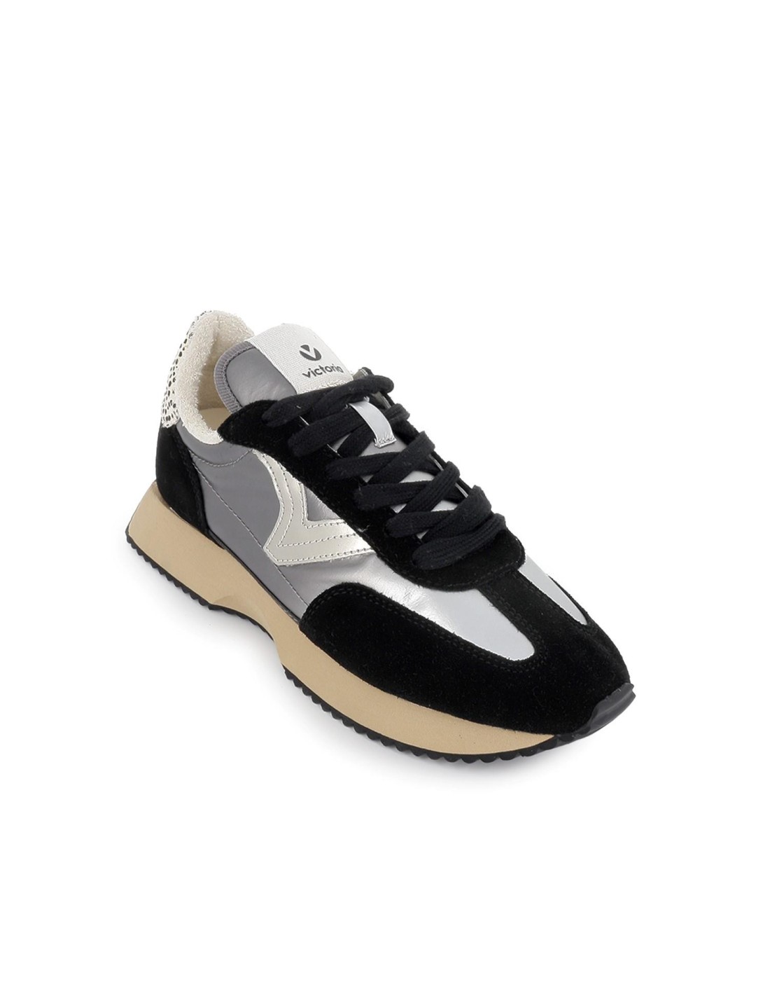 Deportivas nylon y serraje cordones mujer negro y talon serpiente. Deportivas fabricado en nylon plateado combinado con serraje y diseño de taloncon estampado serpiente. Cierre mediante cordones. Incluye plantilla interior. Suela EVA de 3 cm con patin de goma dentada. Unos zapatos que estan en tendencia esta temporada. VICTORIA es una marca de calzado española que comenzó en 1915 en una pequeña localidad riojana con un zapato de lona que hoy en día es un emblema del calzado en España. ¿Quién no ha llevado unas Victoria? Más de 100 años en el mercado del zapato creando modelos que te acompañan en tu vida diaria.