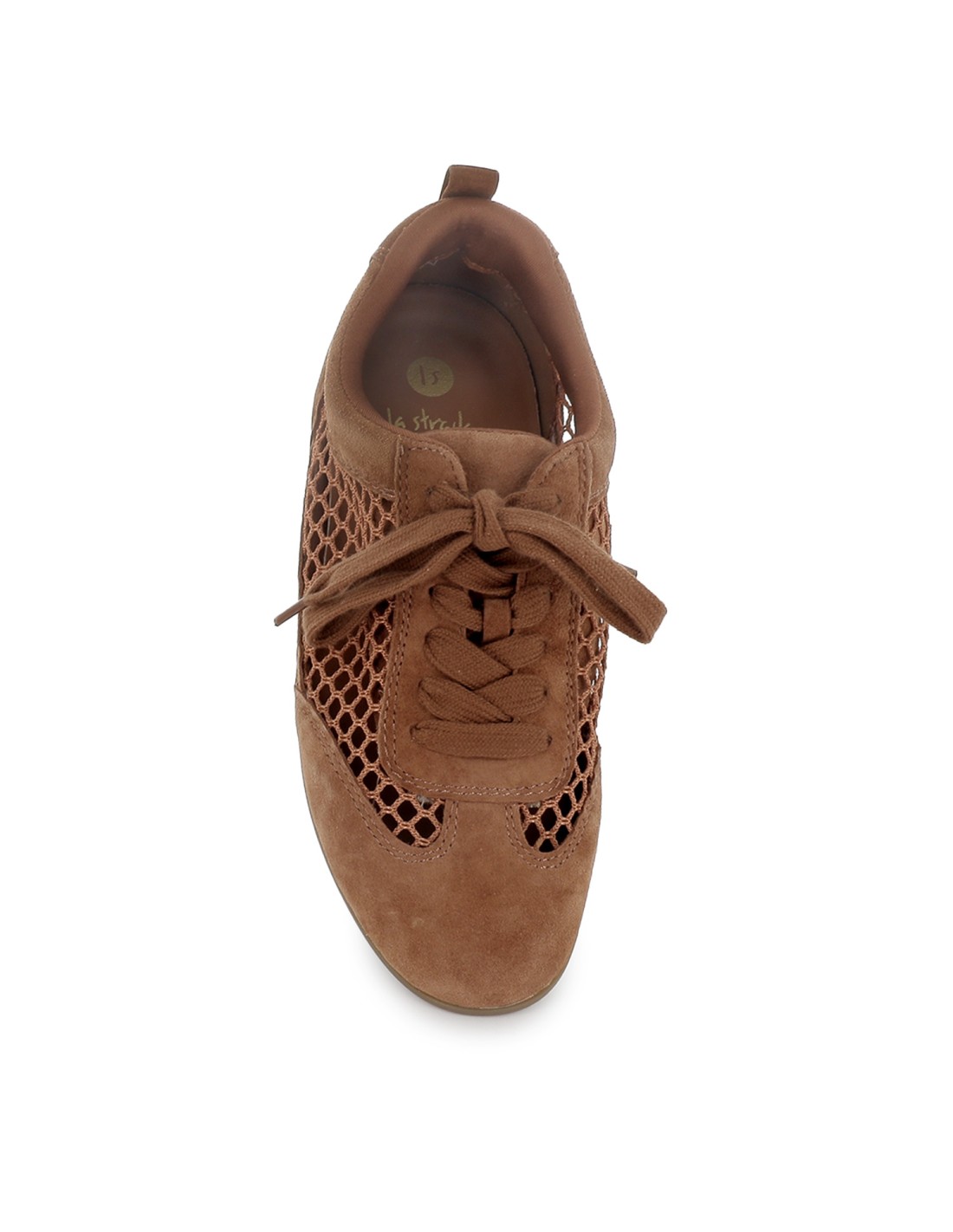 Deportivo piel serraje rejilla plano mujer cuero. Zapato de estilo deportivo fabricado en piel serraje con diseño de rejilla con cierre mediante cordones y suela plana. Zapatos perfectos para ir fresquita y cómoda cualquier dia. LA STRADA es una marca española especializada en calzado joven y de carácter internacional. Materiales de calidad y diseños a la última definen sus fabricaciones.