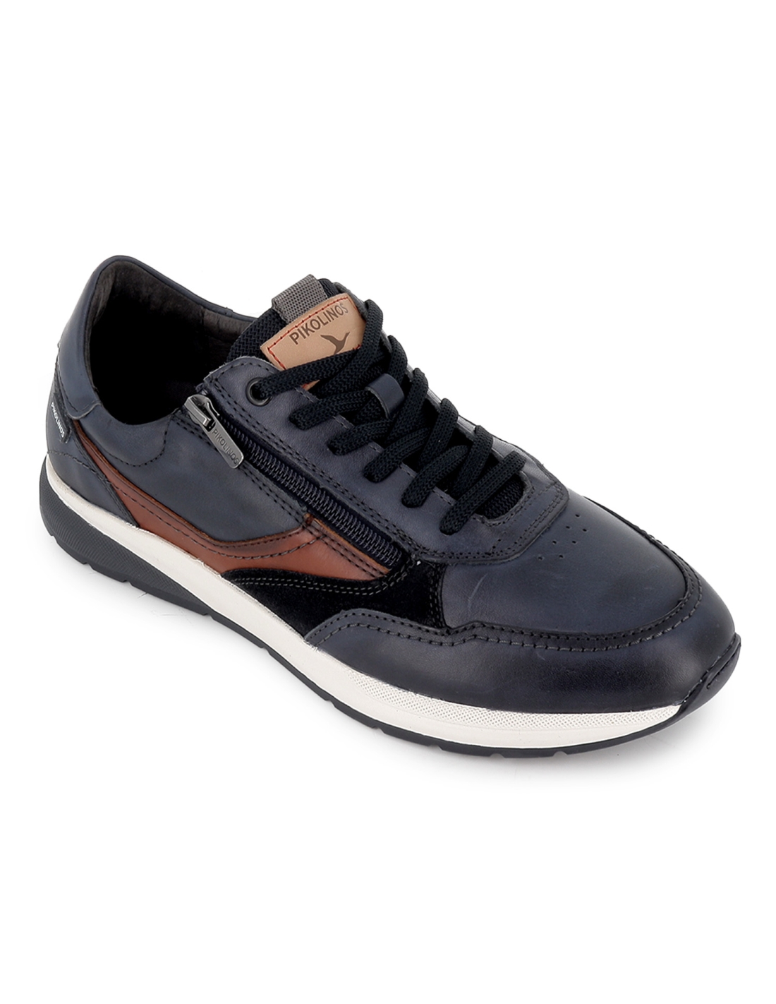 Zapato cordones sport piel con cremallera cordones azul. Zapato cordones de estilo sport fabricada en piel de la mejor calidad con cierre mediante cremallera lateral y cordones. Incluye una plantilla acolchada extraíble y suela antideslizante. Destaca por estar elaborados con material reciclado, con piel certificada que garantiza el compromiso con el medio ambiente, cada detalle suma. PIKOLINOS es una marca que destaca por su esfuerzo en crear un calzado auténtico, de calidad, de diseños únicos y realizados con los mejores materiales naturales. Sus modelos exclusivos están diseñados en España, y son referentes en su campo, siendo esta marca garantía de calidad, elegancia y comodidad.