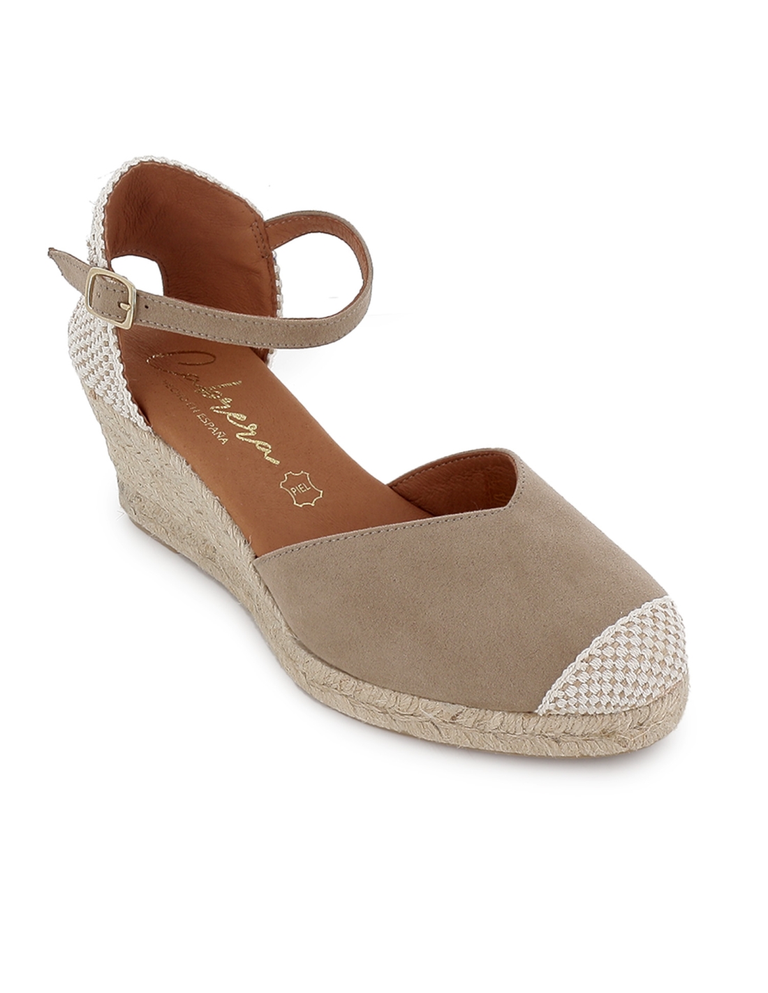Alpargatas de yute napa hebilla mujer dorado. Alpargatas con suela yute fabricada en napa forrada de piel con cierre mediante tira con hebilla a modo de pulsera en el tobillo. Plantilla de piel acolchada que resulta muy comoda. Calzado perfecto para esta temporada. Cabrera es una marca de fabricación española, concretamente ubicada en Elche, centrada en calzado de mujer de estilo tradicional y que su insigna de diferenciación es el uso del yute de alta calidad y la fabricación artesanal, haciendo que cada pieza sea única.