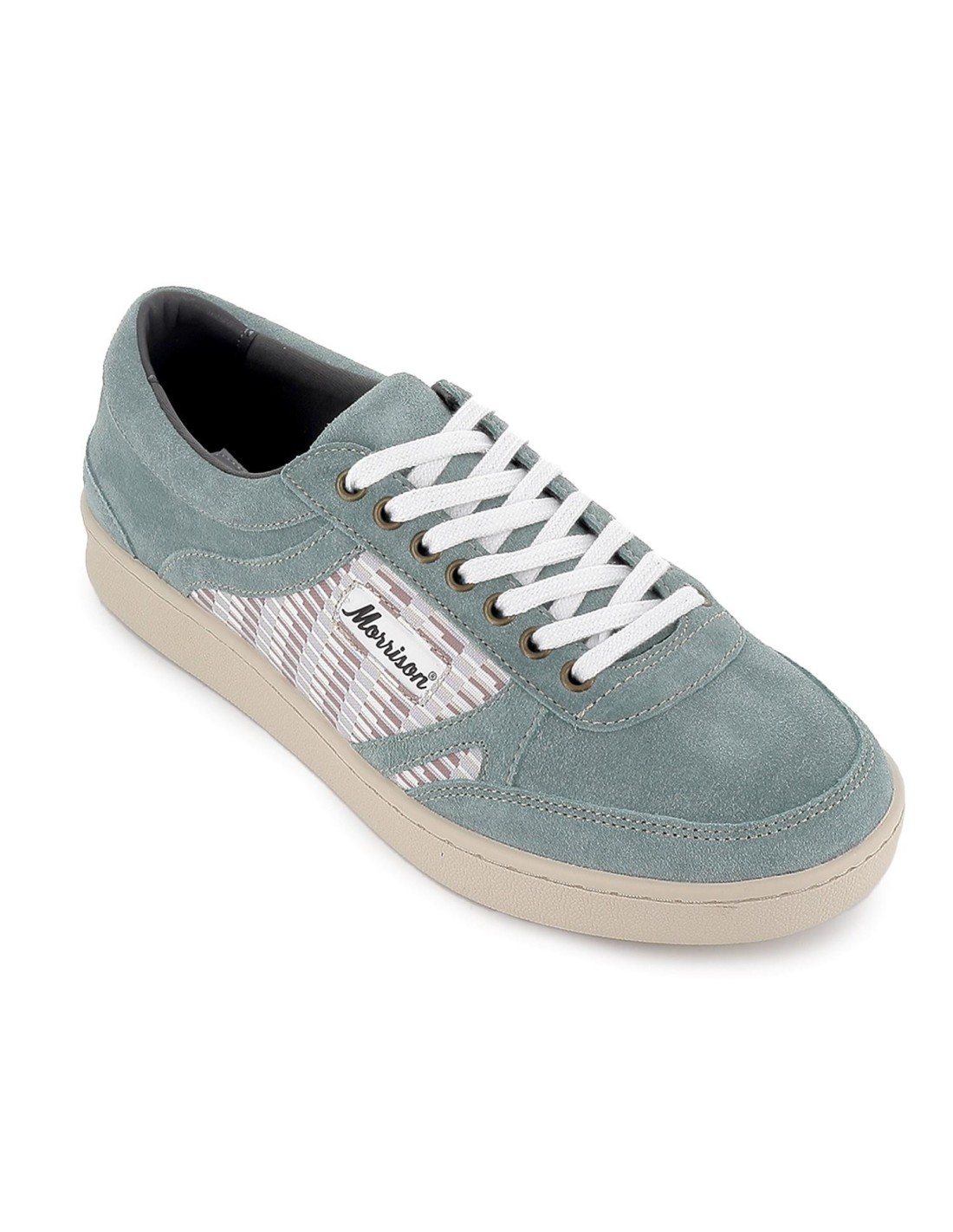 Deportivos piel serraje detalle listas hombre gris. Deportivos tipo tenis fabricadas en piel serraje con cierre mediante cordones. Tiene un diseño lateral con motivos de listas horizontales al tono. Interior reforzado y plantilla extraíble. Suela de goma reciclada y cosida a mano. Zapatillas comodas perfectos para uso diario. Morrison Shoes es una marca que destaca por su fabricación a mano en España y la elección de los mejores materiales, buscando así la mejor calidad y comodidad. Destaca por sus diseños. Sus modelos incluyen plantilla extraíble y suela elevada para un plus de confort.