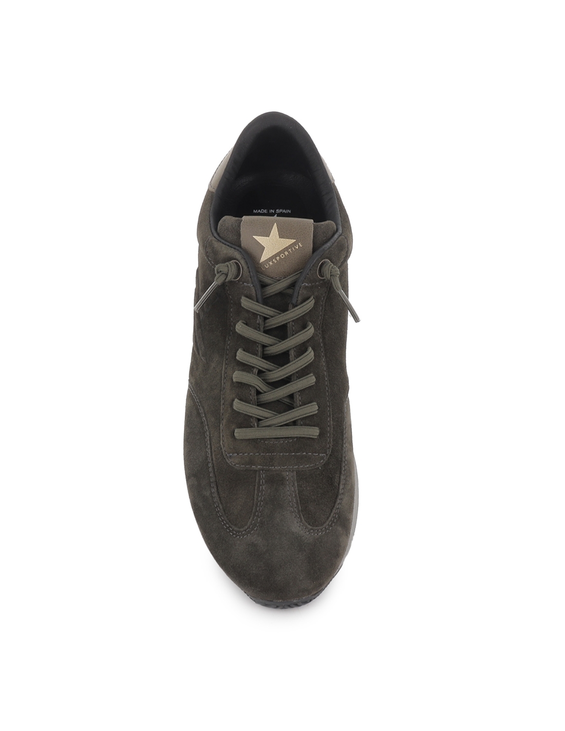 Deportiva piel serraje cordones elasticos comodo hombre verde. Deportiva fabricadas en piel serraje con diseño de logo lateral grabado y ajuste mediante cordones elásticos. Plantilla extraíble. Suela de goma ligera con plataforma. Unos zapatos cómodos, perfectos para uso diario. CETTI es una marca de calzado que diseña y fabrica 100 % en España. Zapatos y zapatillas de corte urbano para mujer y hombre que destacan por su creatividad, dinamismo, tendencia y estilo propio. Zapatos que combinan estampados, texturas y materiales de la mejor calidad para dar un resultado único y que marque la diferencia cada temporada, que sean cómodos, ligeros, de calidad y, en definitiva, que te encanten.
