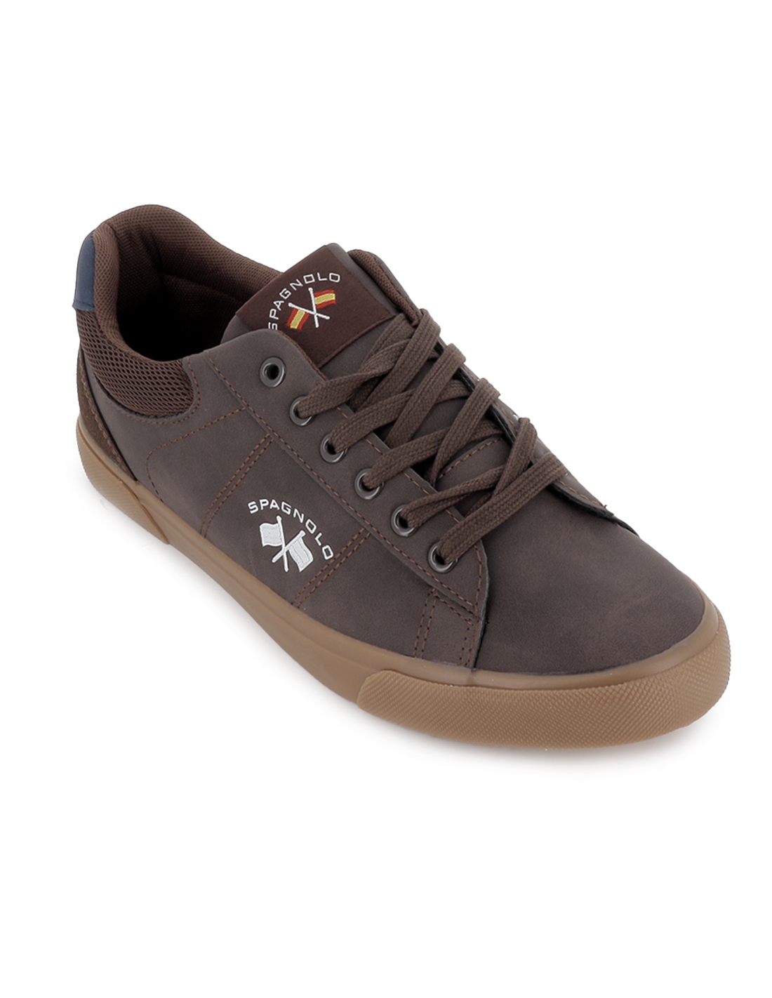 Deportivo cordones diseño collarin plano y flexible hombre marron. Deportivo tipo tenis con diseño de logo lateral y collarin acolchado en la zona del talon con cierre mediante cordones. Suela plana de goma antideslizante, muy flexible y resistente al desgaste. Este es un basico que te acompañara todos los dias Spagnolo es una marca andaluza creada en 1933 que, desde entonces, está en constante evolución hasta llegar a día de hoy, que tiene presencia internacional. Spagnolo tiene colecciones tanto de hombre como de mujer como infantil, que se adaptan a cada estilo de vida desde el estilo business casual hasta sport.