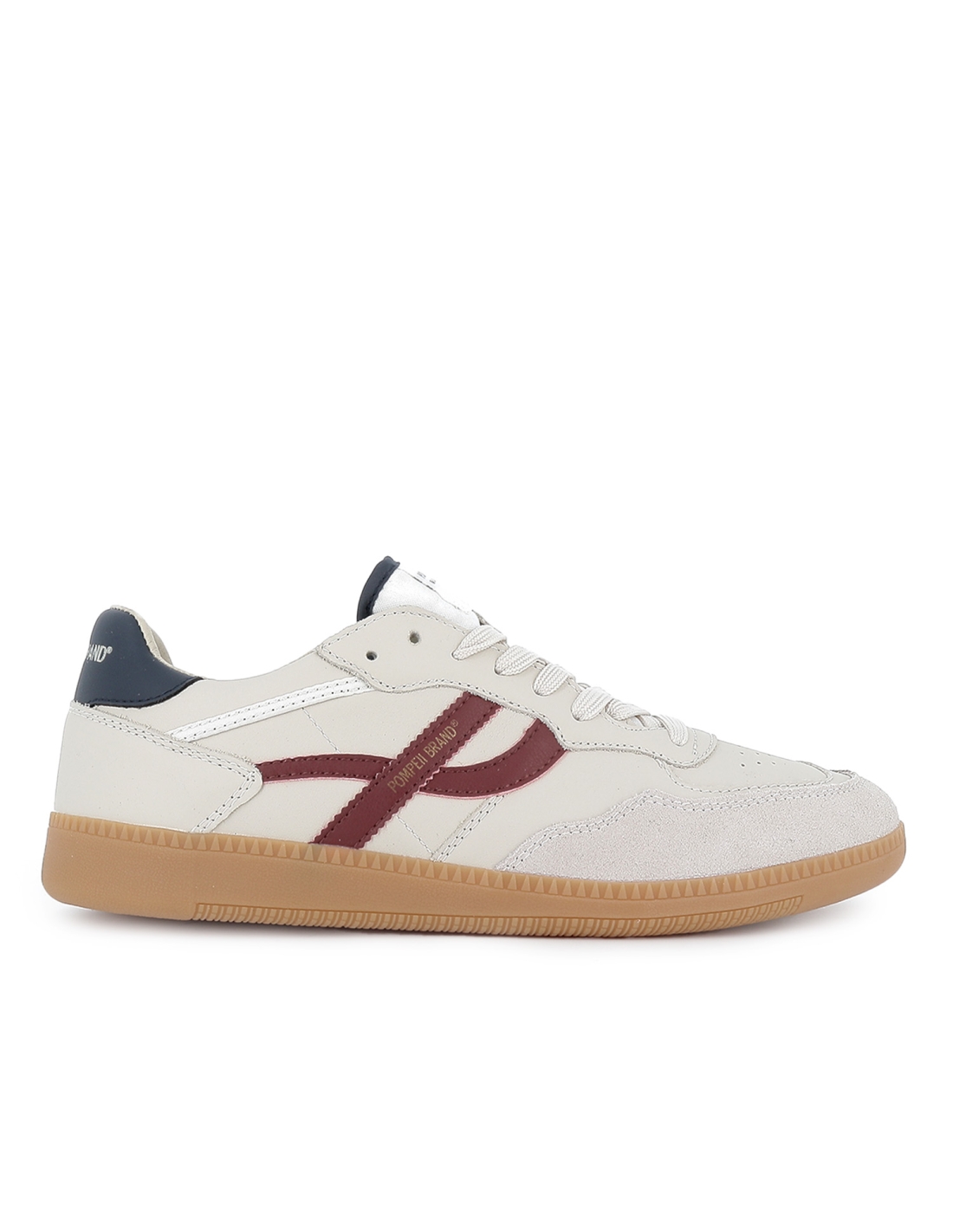 Deportivas piel napa cordones suela flexible hombre blanca. Zapatilla estilo basket inspirada en los 80 fabricada en piel napa con suela de goma color caramelo y cordones de algodón. Estilo casual perfecto para todos los días. Pompeii es una marca que fabrica 100% en España y tiene un estilo muy característico, es urbano y cada detalle cuenta con un toque innovador. Las zapatillas están cuentan con piel de serraje hidrófugo impermeable, cierre de cordones de cuero y su suela tiene una tecnología que le aporta flexibilidad y durabilidad.