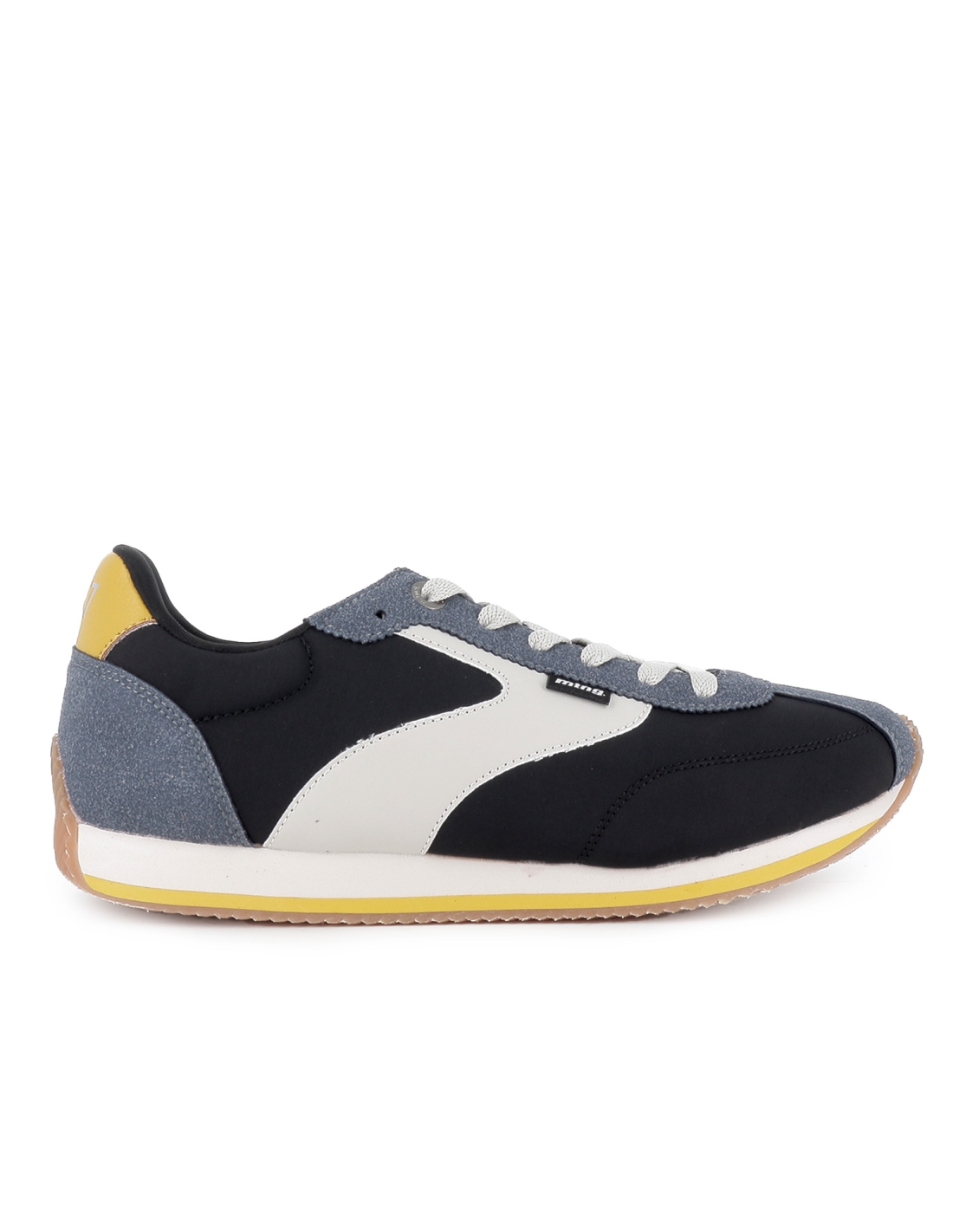 Deportiva nylon retrorunning contrastes cordones hombre azul. Deportiva de estilo casual fabricado en nylon creando contraste en diferentes colores con diseño lateral y cierre mediante cordones. Suela retrorunning combinada que resulta muy ligera. Unas deportivas basicas y muy combinables. MTNG es una marca creada en España en 1967. Se especializa en calzado juvenil y de carácter rompedor. Hoy en día tiene presencia en más de 60 países, y está reconocida mundialmente por sus diseños actuales y con personalidad.