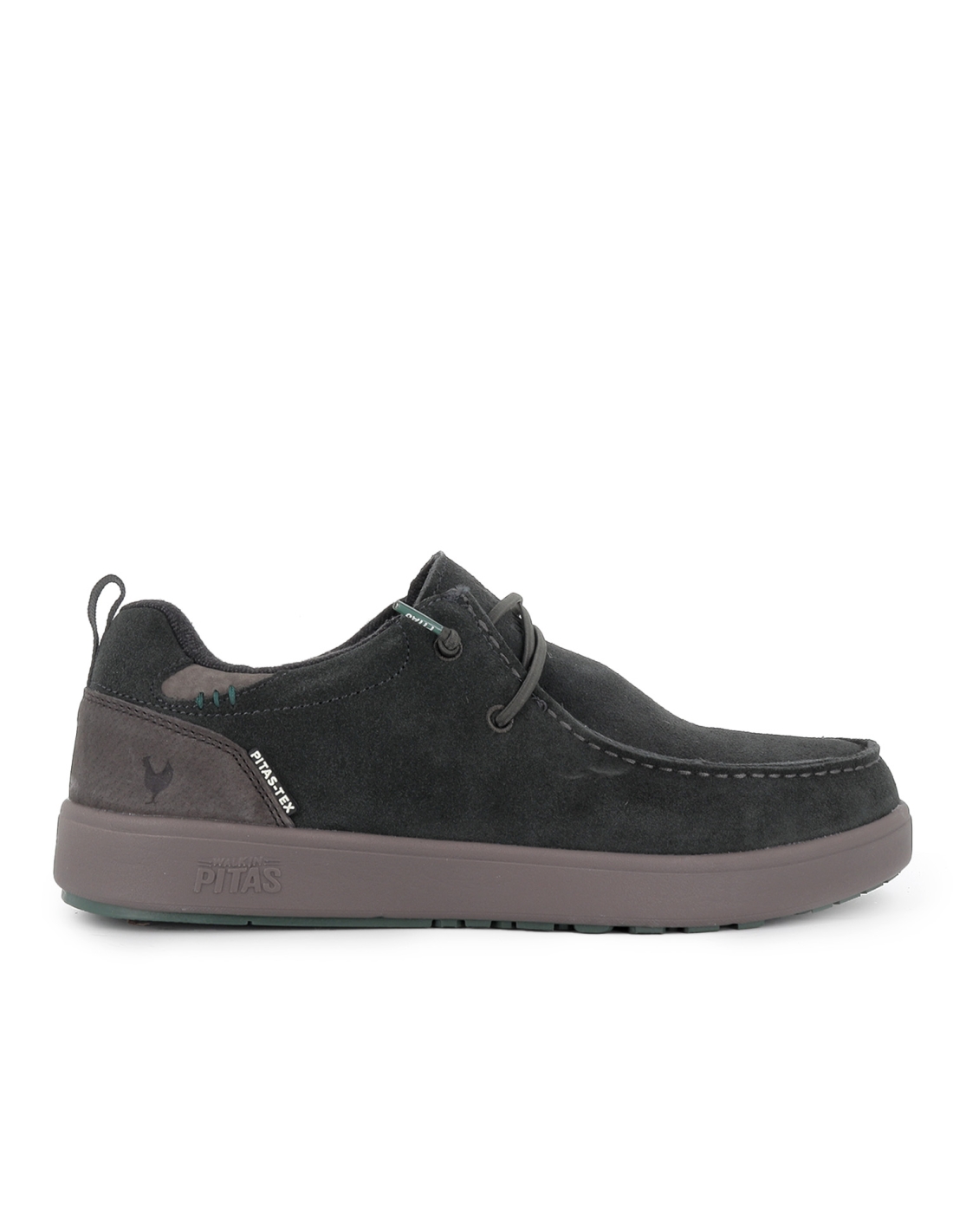 Wallabi casual serraje cordones elásticos hombre gris. Wallabi de estilo casual fabricado serraje hidrofugo que repele al agua y cierre mediante cordones elásticos. Plantilla extraible y suela EVA muy ligera y confortable. Zapatos casuales que puedes usar cualquier día. Se necesita un tratamiento en la piel para que perdure el efecto hidrofugo. Walking Pitas es una marca que surge en 2015 en Asturias. Ofrecen calzado centrado en modelos urbanos llenos de color, cómodos, originales y divertidos, para que derroches felicidad de la cabeza a los pies. Calzado 100% fabricado en España con materiales de alta calidad.