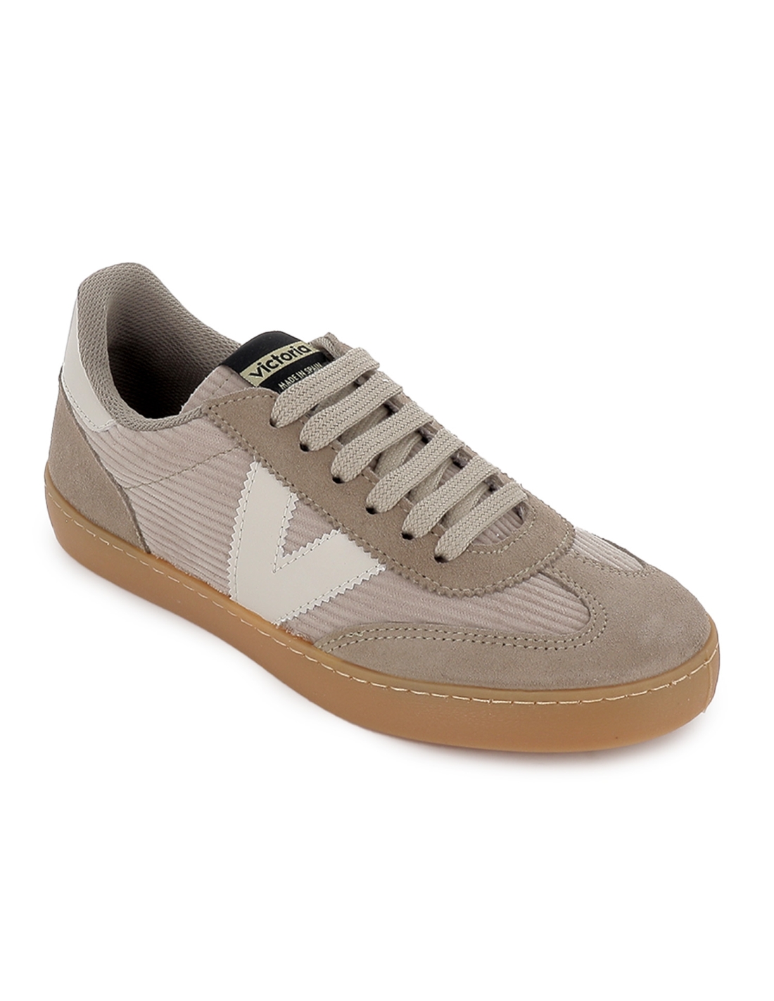 Deportivas pana y serraje suela caramelo comoda mujer taupe. Deportivas de estilo retro fabricadas en pana y serraje con cierre mediante cordones y suela caramelo de altura plana que resulta comoda. Unas zapatillas deportivas basicas que no pueden faltar en tu armario. VICTORIA es una marca de calzado española que comenzó en 1915 en una pequeña localidad riojana con un zapato de lona que hoy en día es un emblema del calzado en España. ¿Quién no ha llevado unas Victoria? Más de 100 años en el mercado del zapato creando modelos que te acompañan en tu vida diaria.