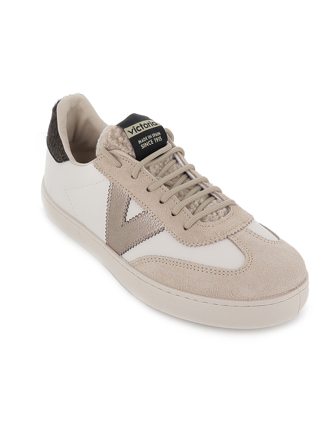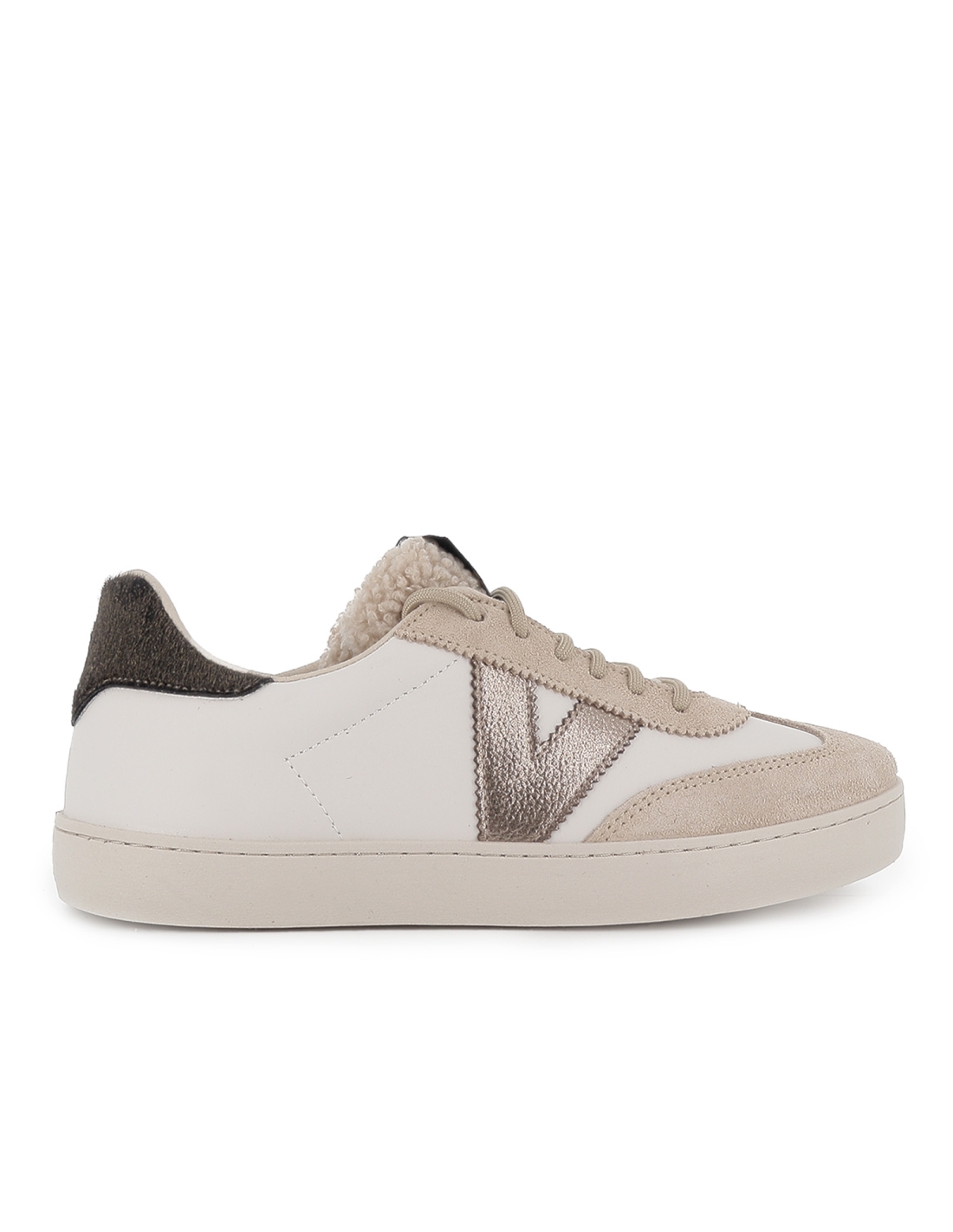 Deportiva piel y serraje solapa borreguito piel potro mujer beig. Deportiva de estilo ciclista fabricado en piel y serraje con talon de piel potro y diseño de solapa borreguito. Suela plana y detalle logo lateral. Cierre mediante cordones. Unas zapatillas facilmente combinables y perfectas para uso diario. VICTORIA es una marca de calzado española que comenzó en 1915 en una pequeña localidad riojana con un zapato de lona que hoy en dia es un emblema del calzado en España. ¿Quien no ha llevado unas Victoria? Mas de 100 años en el mercado del zapato creando modelos que te acompañan en tu vida diaria.
