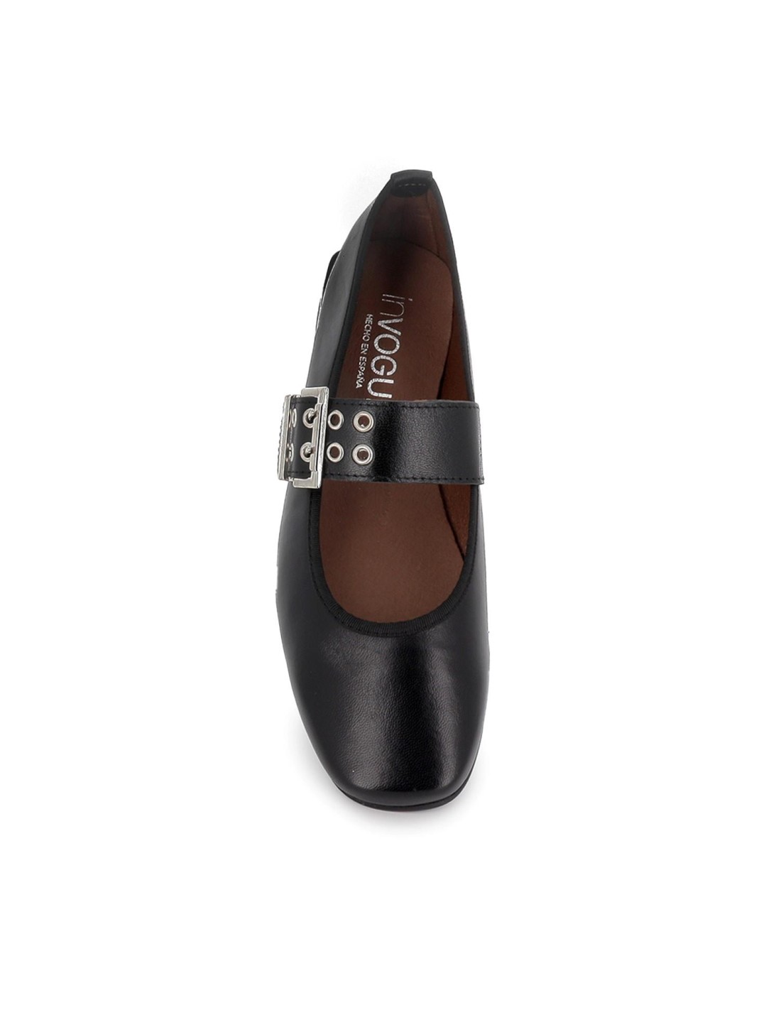 Zapato salon piel plano con hebilla mujer negro. Zapato salon fabricado en piel con cierre mediante hebilla en el talón plano. Unos zapatos muy cómodos que te salvarán del dolor de pies en eventos. Chamby es una marca con fabricación y diseño en España que se centra en el uso de las pieles como principal material en sus creaciones. La versatilidad es el emblema de esta marca que no se limita a ningún estilo concreto. Sea cual sea tu objetivo, Chamby tiene el zapato perfecto para ti.