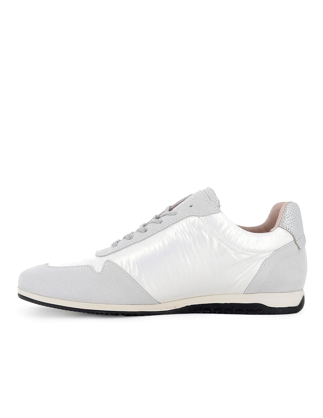 Deportiva piel y nylon cordones elasticos plana mujer blanco. Deportivo fabricado en piel y nylon con cierre de cordones elásticos. Son unos zapatos planos con plantilla extraible. Deportivas con plantilla WondersFly, que resultan muy cómodos para tus looks diarios Plantilla de piel con MEMORY GEL (plantilla de gel con efecto memoria que no se deforma) una tecnología exclusiva para amortiguar la pisada. WONDERS es una marca que diseña y fabrica 100% en España. Sus zapatos son ligeros, ergonómicos, cómodos, resistentes y combinables para multitud de ocasiones de tu vida diaria. Sus valores se basan en la cuidar la calidad de los materiales y en la importancia de los trabajadores y de todos y cada uno de los procesos que intervienen en la creación del calzado.