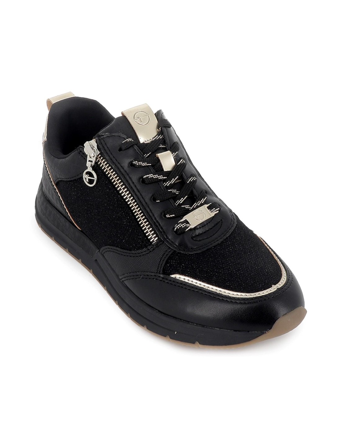 Deportiva vegana con cordones y plantilla extraible mujer negro. Zapato tipo deportivo fabricado con materiales veganos con cierre mediante cordones y cremallera lateral que garantiza su ajuste. caña de 7 cm e incluye plantilla extraible Zapatos perfectos para uso diario gracias a su tecnologia EXTRA COMFORT Tamaris es una marca de diseño aleman con fabricación internacional que se adapta a todos los estilos posibles de calzado femenino. Gracias a su fama en el mercado internacional, Tamaris se ha posicionado como una marca de referencia en cuanto a comodidad y calidad de la piel usada para sus multiples diseño actuales.