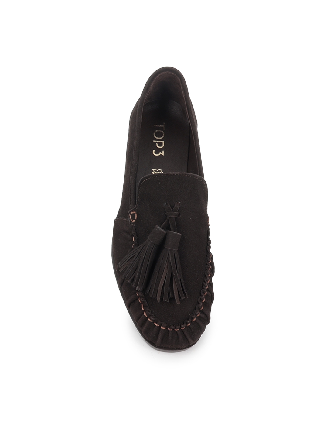Mocasin piel ante suela flexible detalle borla mujer marron. Zapato tipo mocasín fabricado en piel ante con detalle de borla en el empeine y cosido artesanal estilo mocasin. Suela plana y plantilla interior de piel. Es un zapato perfecto para ir al trabajo todos los días, gracias a su comdidad y su facilidad para ser combinado. TOP3 SHOES es una marca de calzado española que aboga por la comodidad, estilo actual y naturalidad en sus diseños. Calzado cómodo, con colores tierra muy combinables y de estilo propio, para mujeres de todos los estilos y edades que busquen moda y confort.