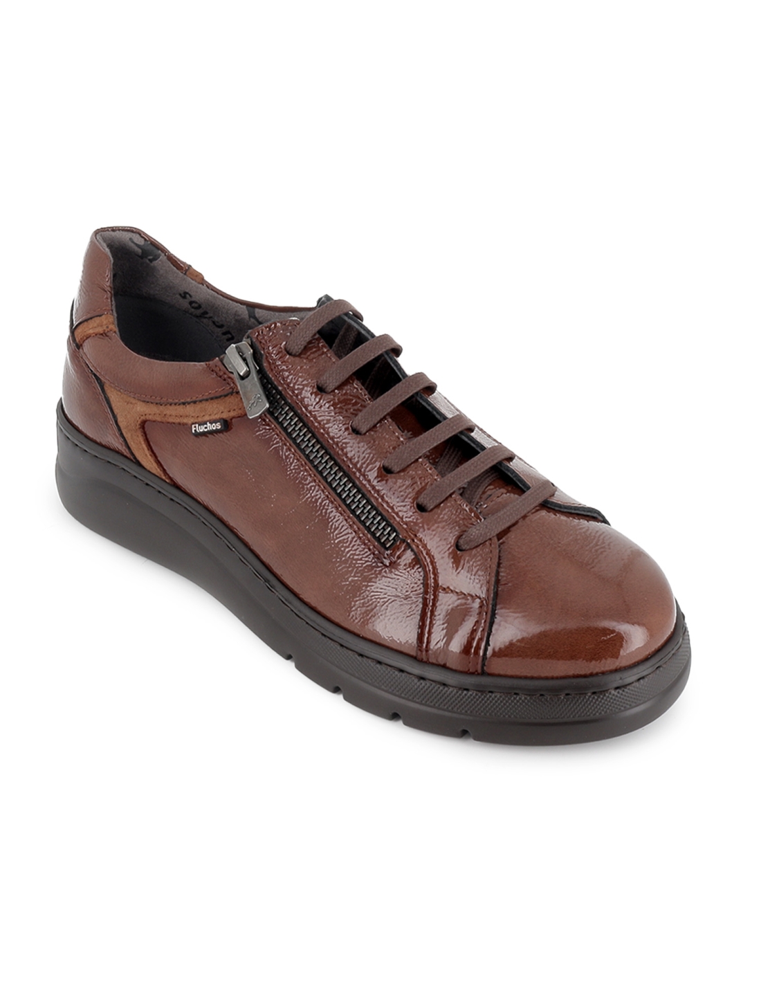 Deportivas piel cordones y cremallera ligera cuña mujer cuero. Deportivas fabricadas en piel con cierre mediante cordones y cremallera incluyen una ligera cuña. Diseño moderno y versatil que podras combinar de muchas maneras distintas adaptandose a tu estilo. Zapatos que combinan a la perfecciones estilo y fucionalidad. FLUCHOS es una marca española líder en el mercado internacional. Sus estandartes son ofrecer un calzado cómodo, de calidad y 100 % HECHO EN ESPAÑA, que incluyan las tecnologías más avanzadas, como Air System Fluchos, Shock Absorber y Air Confort System. Todo para conseguir un calzado más ligero, que regule la temperatura, impermeable y flexible.