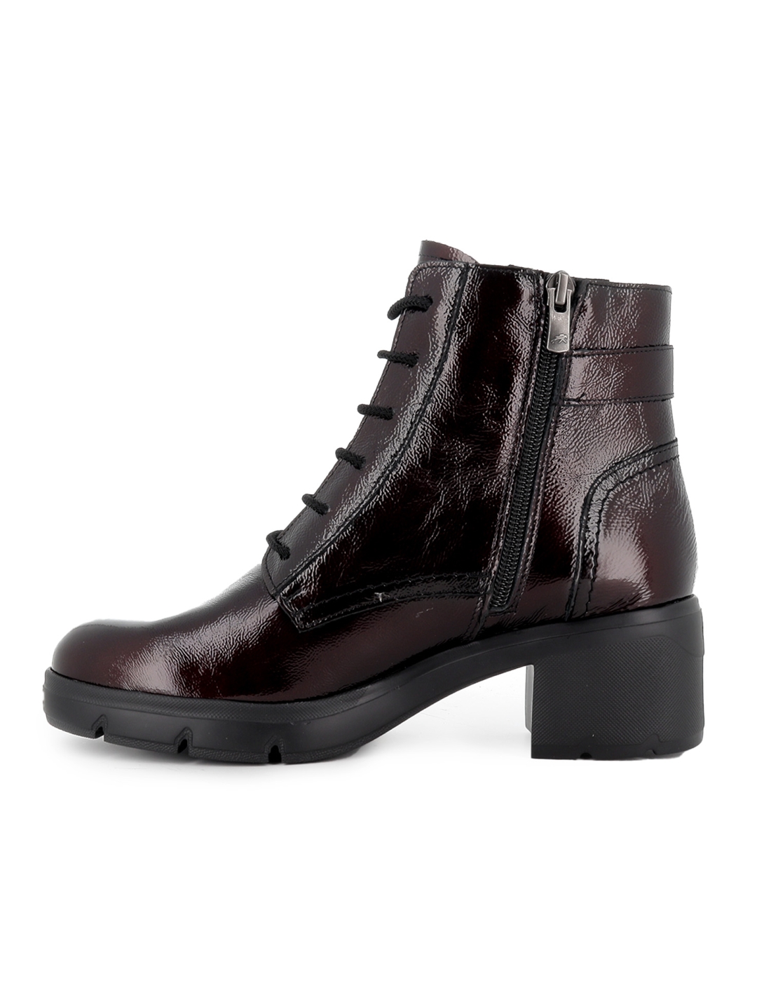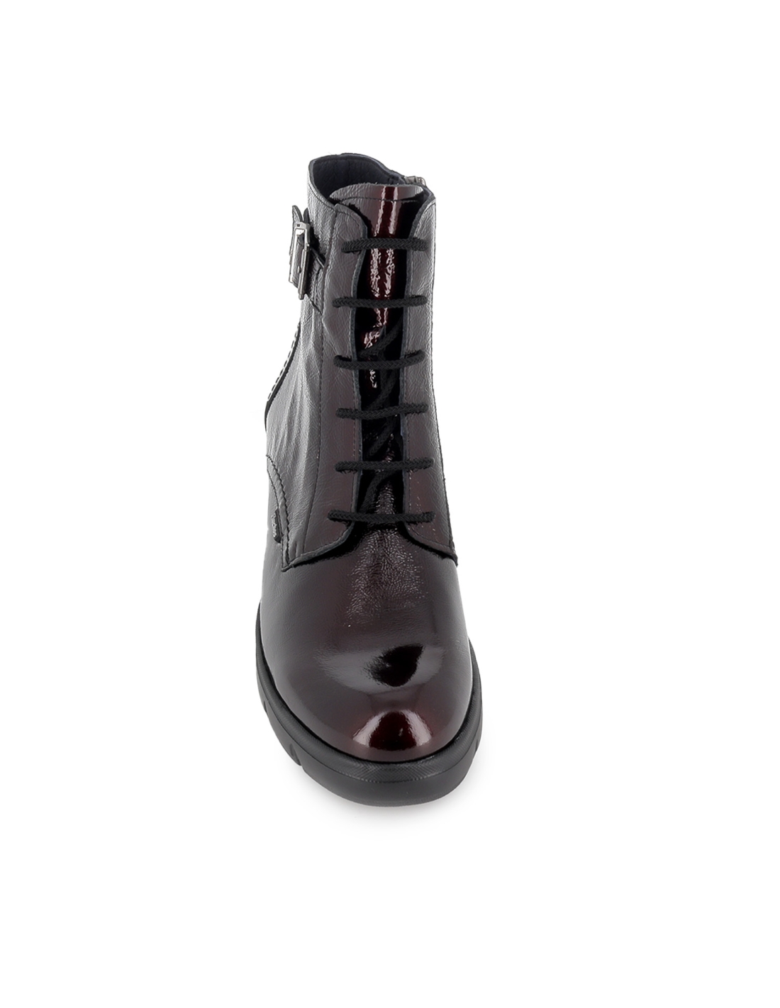 Botin militar charol cordones y hebilla tacon mujer burdeos. Botin tipo militar fabricado en piel charol con cierre mediante cordones y ajuste de hebilla. Suela de goma dentada y resistente con tacon ancho. Este zapato tiene un punto de originalidad y dinamismo. Zapato para completar tus looks de esta temporada. FLUCHOS es una marca española líder en el mercado internacional. Sus estandartes son ofrecer un calzado cómodo, de calidad y 100 % HECHO EN ESPAÑA, que incluyan las tecnologías más avanzadas, como Air System Fluchos, Shock Absorber y Air Confort System. Todo para conseguir un calzado más ligero, que regule la temperatura, impermeable y flexible.