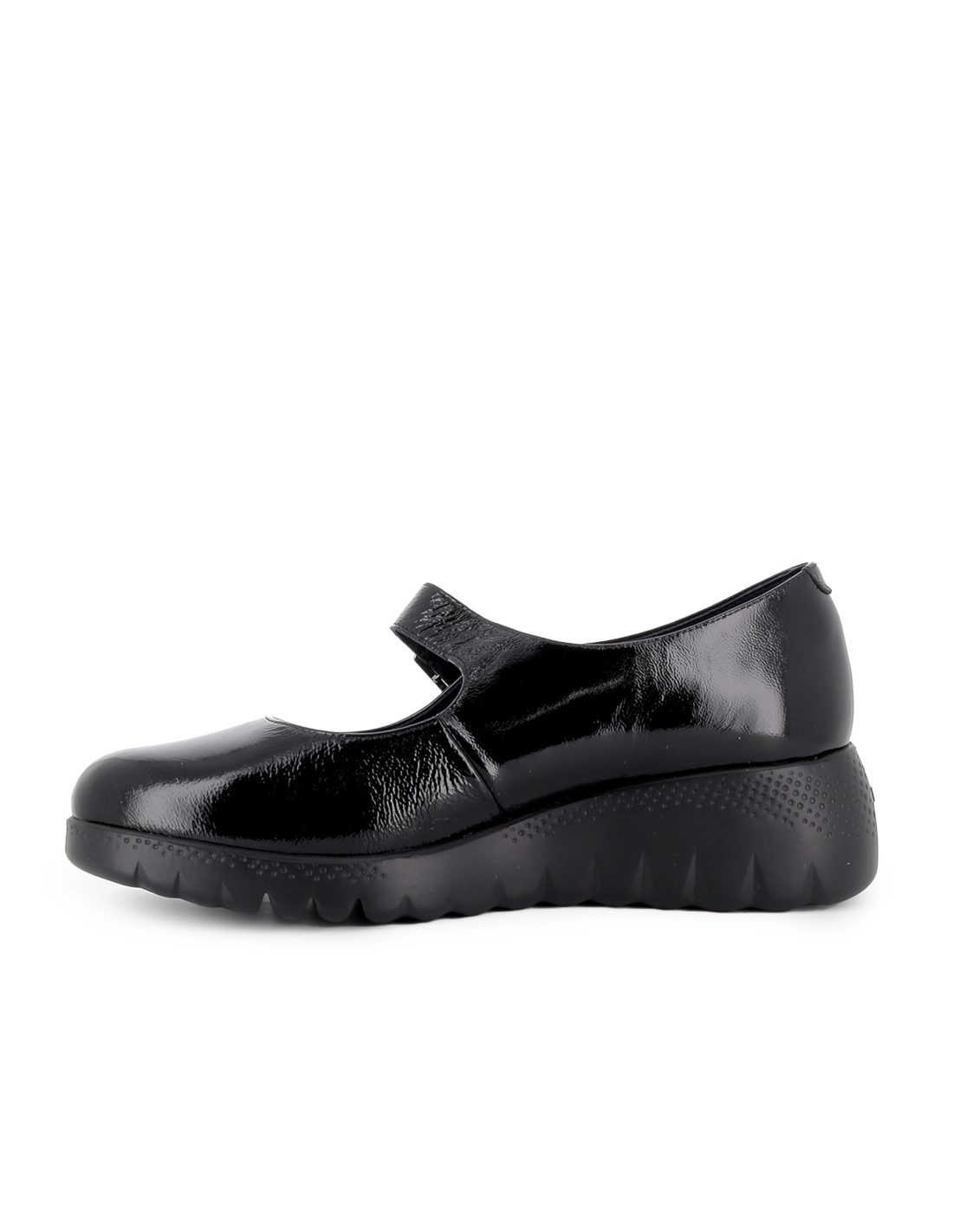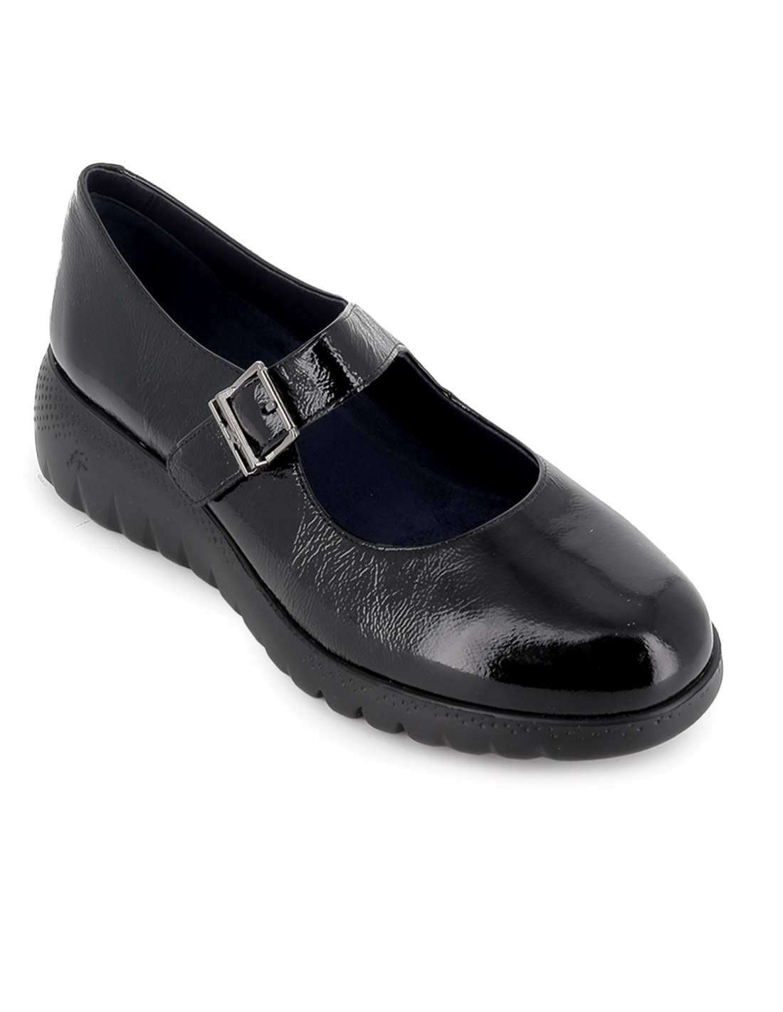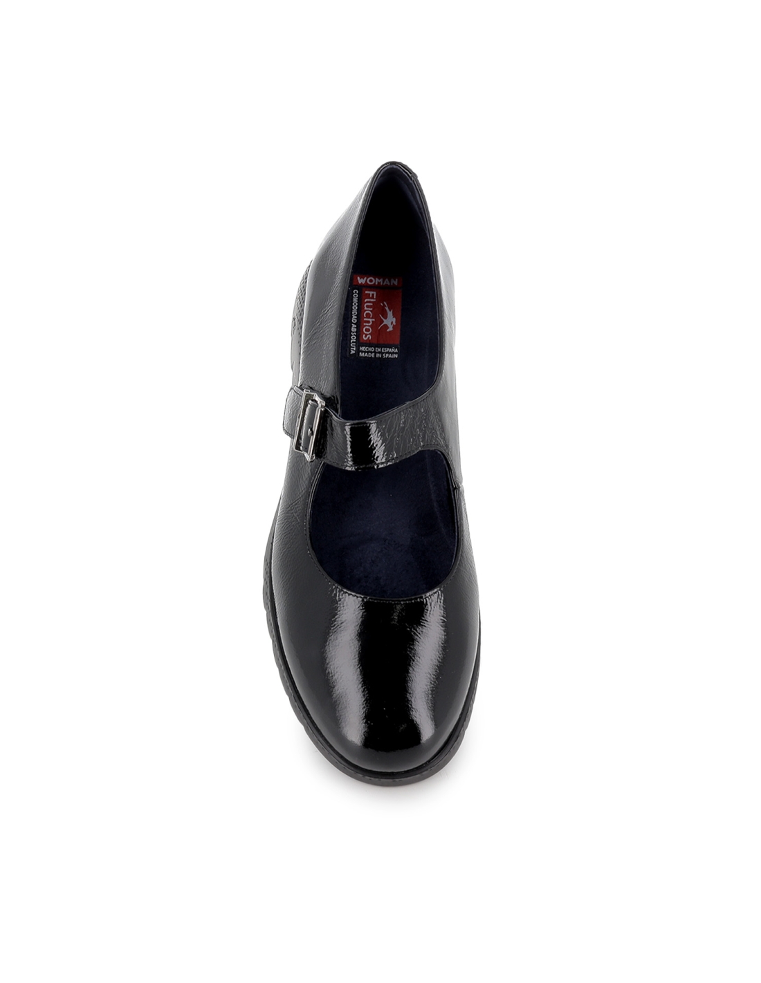 Merceditas charol con cuña ligera y plantilla comoda mujer negra. Zapato con correa tipo merceditas fabricado en piel charol con cuña ligera. Cierre meidnate hebilla sobre el empeine e incluye plantilla comoda. Suela de caucho natural, flexible y ligera, con tecnología DYNERGY y SHOCK ABSORBER, para una amortiguación de la pisada. Todo esto hace de este calzado la opción perfecta para el día a día. FLUCHOS es una marca española líder en el mercado internacional. Sus estandartes son ofrecer un calzado cómodo, de calidad y 100 % HECHO EN ESPAÑA, que incluyan las tecnologías más avanzadas, como Air System Fluchos, Shock Absorber y Air Confort System. Todo para conseguir un calzado más ligero, que regule la temperatura, impermeable y flexible.