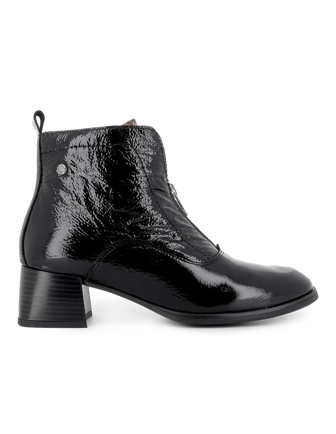 Botin charol piel cremallera lengueta animal print mujer negro. Botin fabricado en charol piel con diseño de lengueta animal print y cierre mediante cremallera central. Tacon bajo con suela de goma y plantilla acolchada para hacer una pisada más comoda. Estas botas son un básico en el armario de invierno, combinan con todo y resultan muy cómodas gracias a su plantilla acolchada. PEPE PARRA es una marca de calzado española. Especializado en calzado casual y de vestir para mujer, sus diseños combinan las últimas tendencias con materiales de gran calidad, como pieles naturales, plantillas acolchadas y de gel, o suelas de goma flexible, para que vayas perfecta y cómoda en cada ocasión con un zapato que destaca por su calidad, autenticidad y cuidado de los detalles.
