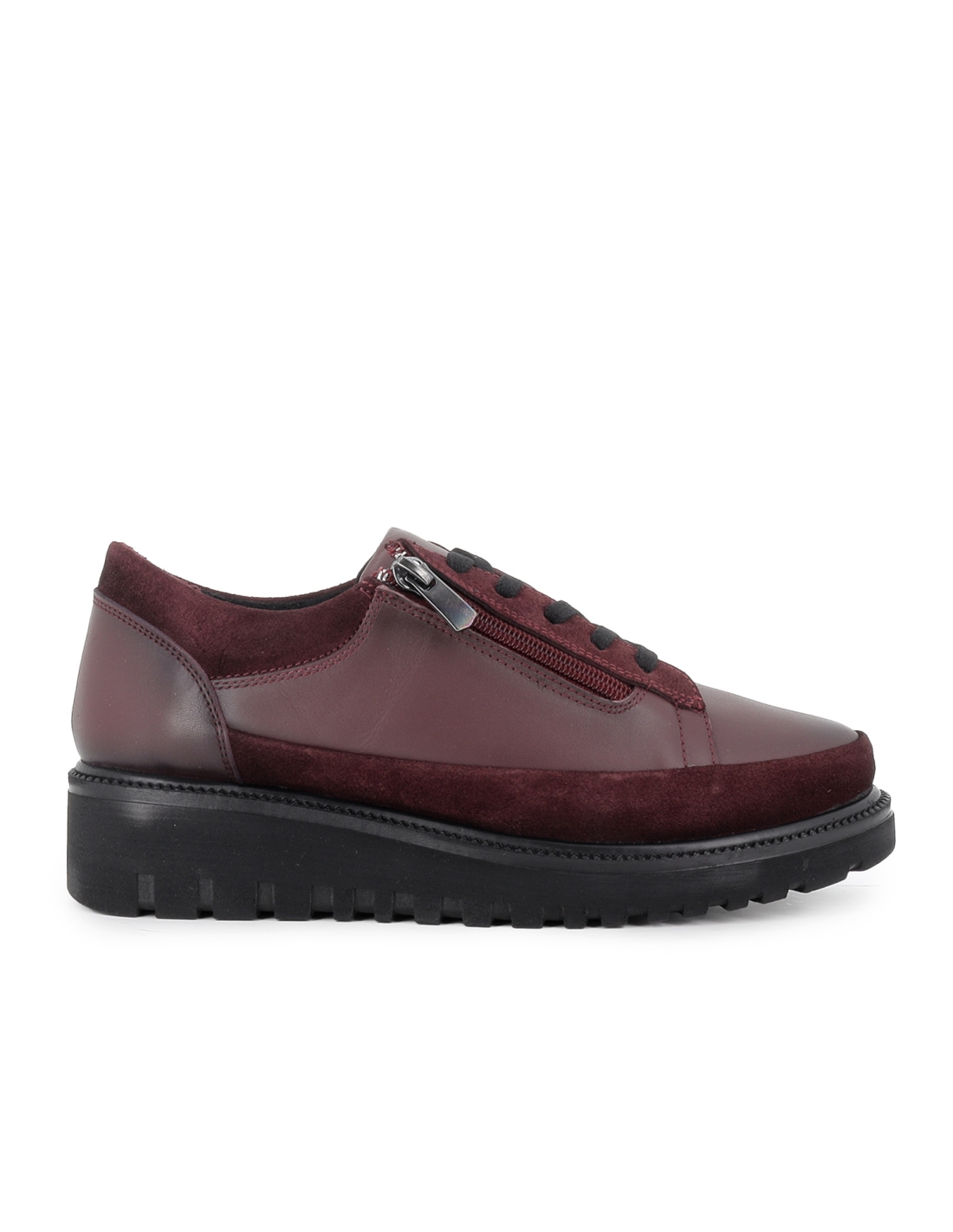Zapato piel cordon y cremallera cuña flexible mujer rojo. Zapato fabricados en piel lisa de primera calidad con cierre mediante cremallera lateral y cordones para garantizar el ajuste del pie al caminar. Zapato de suela cuña flexible con plantilla de piel acolchada y extraible. Zapato perfecto para completar cualquier look. Resulta un zapato de máxima calidad que destaca por el confort de su horma. Fabricación artesanal en España. ERASE es una marca de calzado española. Entre sus valores principales están el uso de pieles de calidad superior y la defensa del medio ambiente. Quien usa un calzado ERASE sabe que calza calidad, confort y ética con unos diseños únicos.