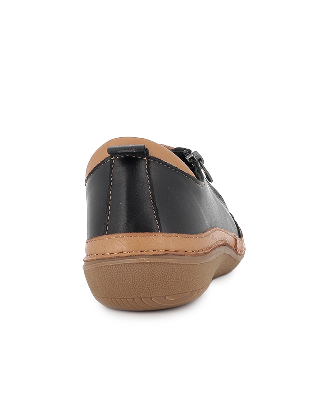 Zapato piel flexible cordon y cremallera plano mujer negro. Zapato fabricados en piel lisa de primera calidad con cierre mediante cremallera lateral y cordones para garantizar el ajuste del pie al caminar. Zapato de suela cuña flexible con plantilla de piel acolchada y extraible. Zapato clasico y muy combinable, perfecto para cualquier dia. Resulta un zapato de máxima calidad que destaca por el confort de su horma. Fabricación artesanal en España. ERASE es una marca de calzado española. Entre sus valores principales están el uso de pieles de calidad superior y la defensa del medio ambiente. Quien usa un calzado ERASE sabe que calza calidad, confort y ética con unos diseños únicos.