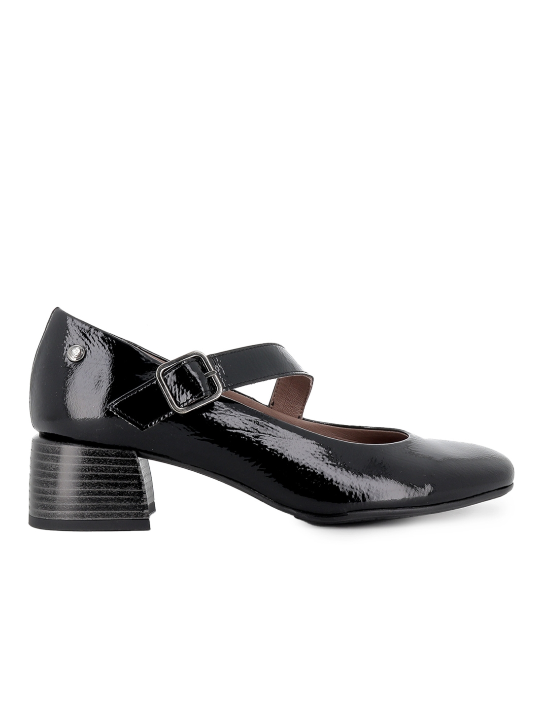 Zapato correa piel charol plantilla acolchada mujer negro. Zapato de correa fabricado en piel charol con detalle central grande y tacon lacado de baja altura. Suela flexible que incluye plantilla acolchada de piel, perfecto para elevar tus looks de diario. PEPE PARRA es una marca de calzado española. Especializado en calzado casual y de vestir para mujer, sus diseños combinan las últimas tendencias con materiales de gran calidad, como pieles naturales, plantillas acolchadas y de gel, o suelas de goma flexible, para que vayas perfecta y cómoda en cada ocasión con un zapato que destaca por su calidad, autenticidad y cuidado de los detalles.