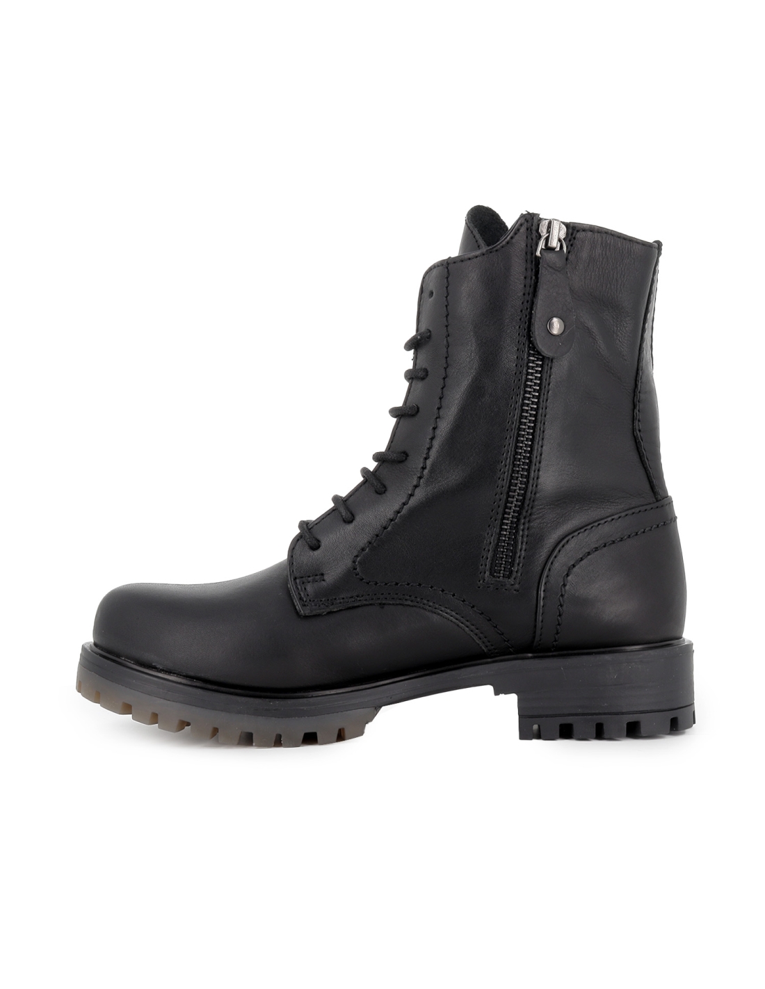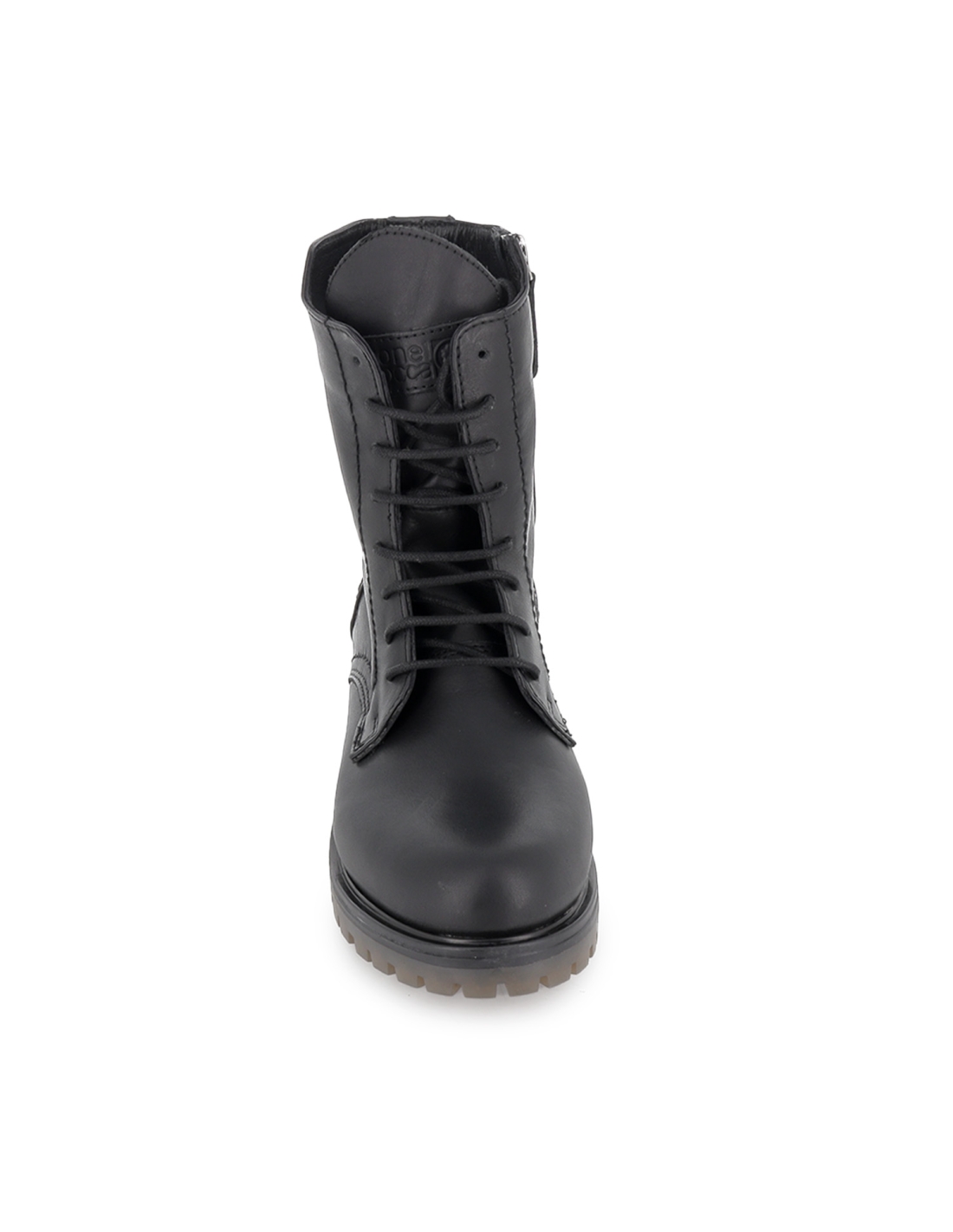 Bota militar piel diseño cordones y cremallera tacon mujer negro. Botas tipo militar fabricados en España con piel vacuno noble con diseño de corte irregular y cierre de cordones y cremallera interior. Suela con tacon bajo y horma redonda. Zapato clasico que no puede faltar en tu armario. CORONEL TAPIOCA es una marca que nació en el año 1989 con originales diseños de calzado y textil para el ocio y la aventura. Hoy en día abarca también calzado urbano de calidad, resistente y de diseño respetuoso con el medio ambiente.