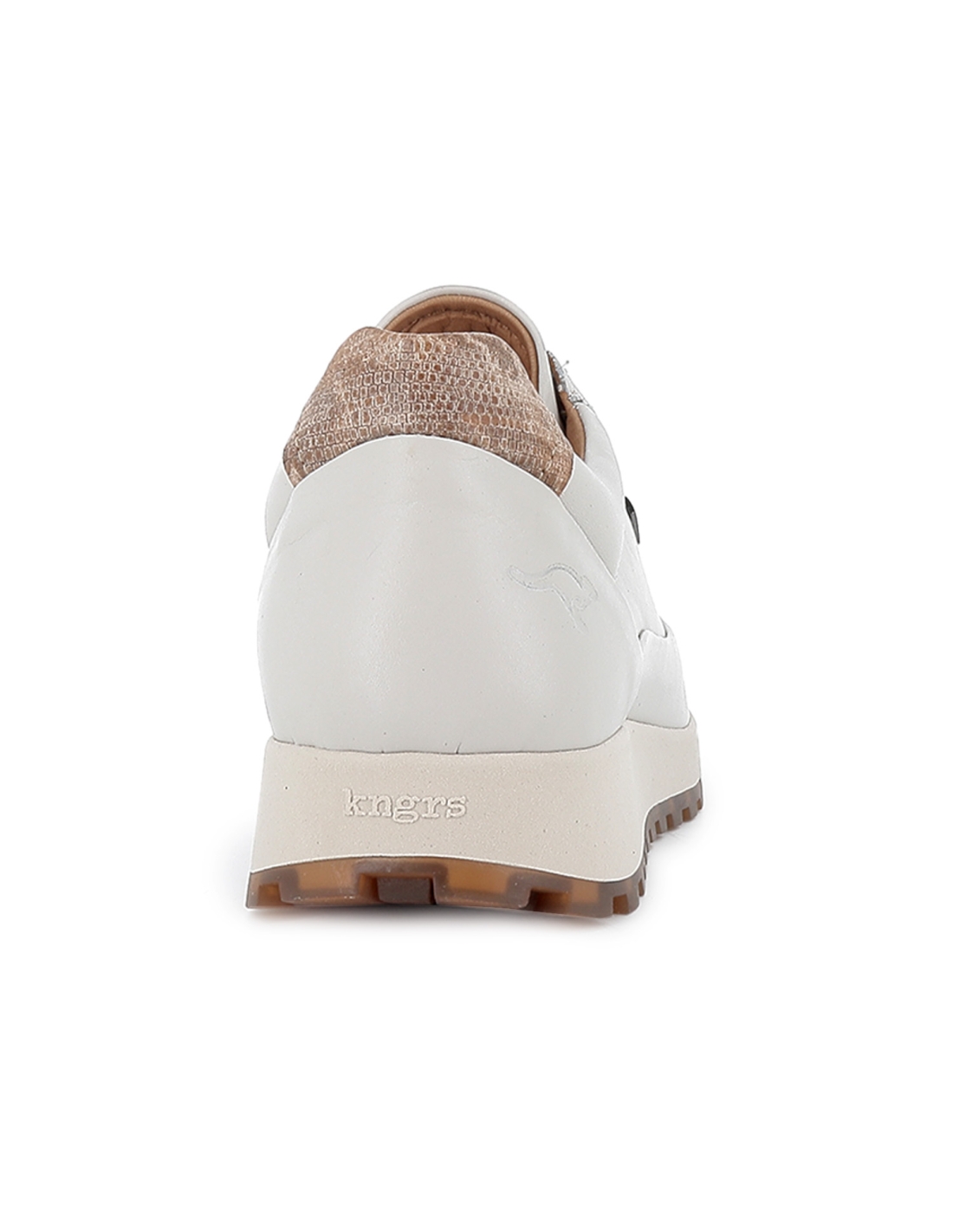 Deportivo piel refuerzo cordones y cremallera cuña mujer blanco. Deportivo fabricado en piel con refuerzo en el talon y cierre mediante cordones y cremallera exterior para facilitar calce y retirada del zapato. Plantilla extraíble y suela de cula ligera. Zapatos perfectos para uso continuado. Kangaroos es una marca de calzado joven con fabricación 100% en España. Buscan ofrecer la máxima calidad al mejor precio con todos sus productos. Zapatos de estilo deportivo y urbano siguiendo las tendencias actuales.
