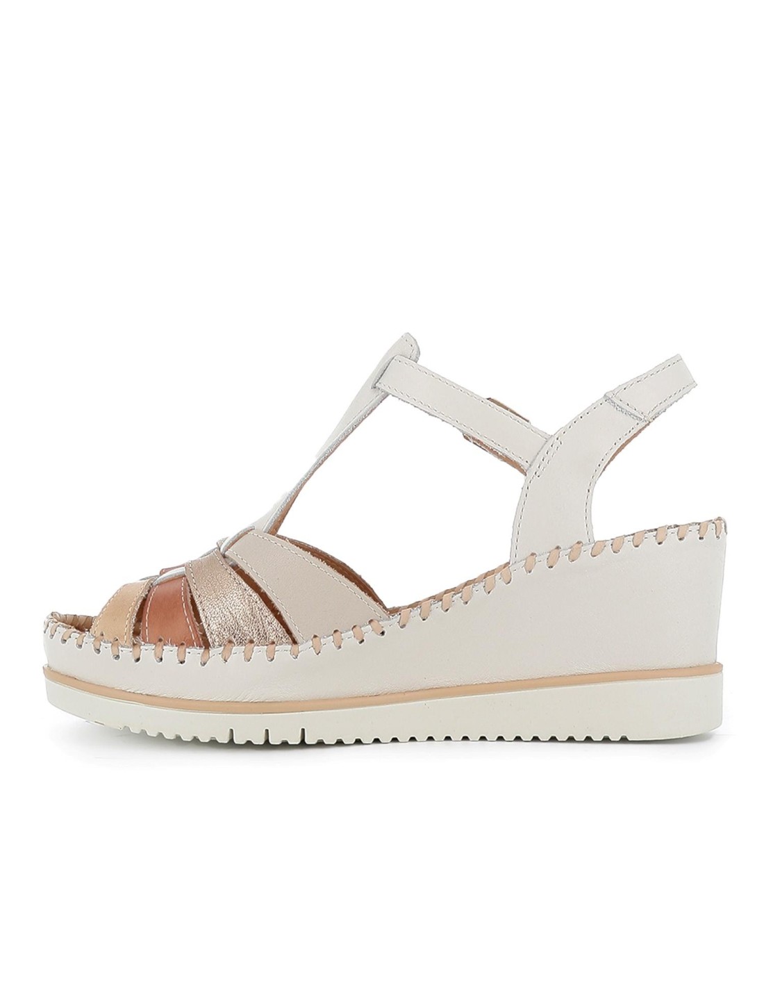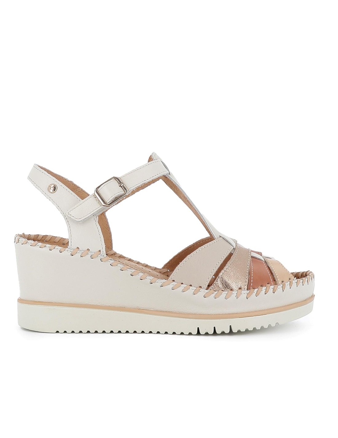 Sandalia piel cuña plataforma y correas mujer blanco. Sandalia abierta fabricada en piel 100% vacuno diseño varias tiras en la puntera unidas en una tira central con cierre mediante correa. Suela de cuña con plataforma extra ligera. Tus pies lo agraderán esta temporada. PIKOLINOS es una marca que destaca por su esfuerzo en crear un calzado autenténtico, de calidad, de diseños únicos y realizados con los mejores materiales naturales. Sus modelos exclusivos están diseñados en España, y son referentes en su campo, siendo esta marca garantía de calidad, elegancia y comodidad.