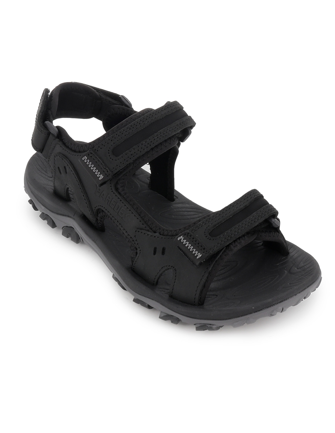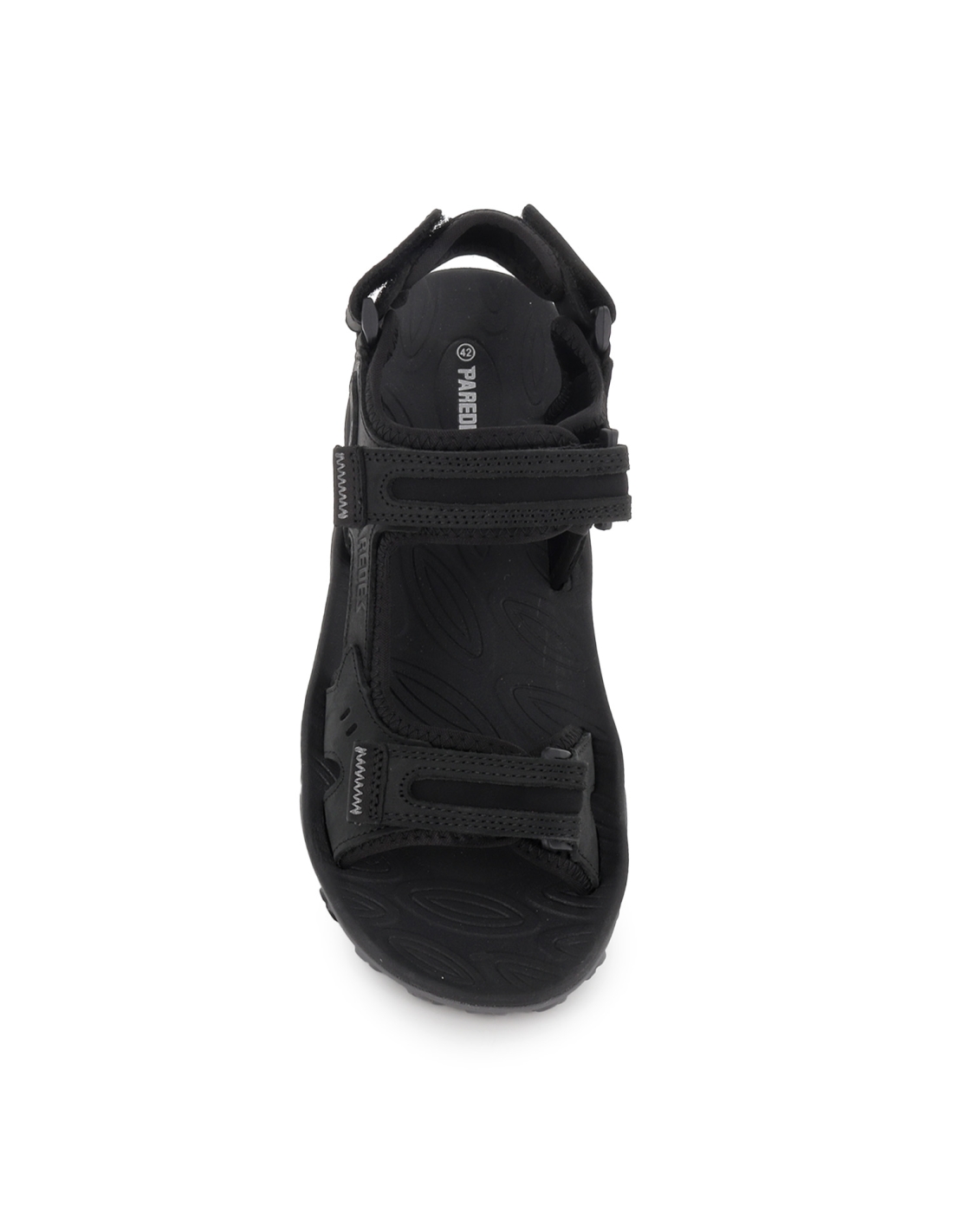 Sandalia californiana piel y textil 3 velcros hombre negro. Sandalia tipo californiana fabricado en piel y forro textil con cierre mediante 3 velcros. Plantilla acolchada de piel transpirable con suela tipo trekking. Con varios cierres de velcro en el empeine y talón, esta sandalia sport se ajustará a tu pie a la perfección, consiguiendo un calzado cómodo y fresco para este verano, que podrás llevar a modo casual en la ciudad o para tus paseos por el campo. PAREDES es una marca mítica de calzado española que marcó un hito en los años sesenta. Fueron la primera marca de España que combinaba deportivos con moda, y sus deportivas arrasaron por todo el país, por lo que podemos decir que revolucionaron el concepto del calzado deportivo. Hoy en día, a pesar de la competencia de las grandes marcas nacionales, son un referente de lo más vintage. Por todo ello son una marca única.