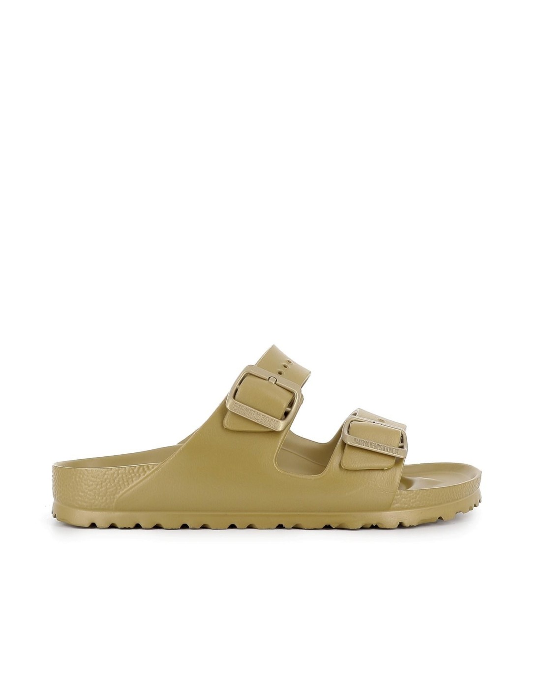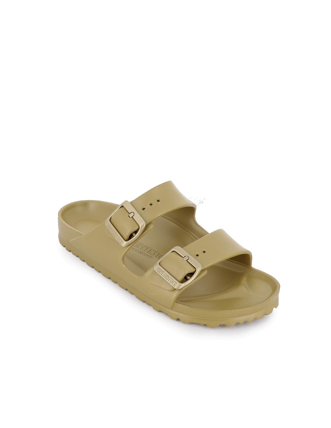 Sandalia abierta dos hebilla y suela EVA hombre dorada. Sandalia abierta fabricado con material impermeable con ajuste mediante dos hebillas y tiene una plantilla anatómica unida a la suela EVA formando una sola pieza. La suela EVA amortigua al caminar porque compensa las irregularidades del suelo. Son unas sandalias muy cómodas y ligeras. Son unas sandalias perfectas para verano, no pasa nada si se mojan.