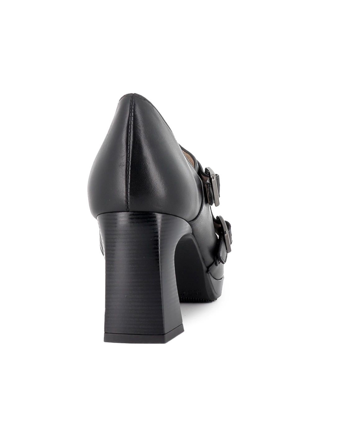 Zapato abotinado piel con correas y elastico tacon mujer negro. Zapato abotinado fabricado en piel con diseño de correas con hebillas decorativas y ajuste mediante elastico lateral. Zapato abotinado de punta fina con suela antideslizante con 7 cm de tacón y plataforma. Incorpora tecnología TriFlow – Gel System para mayor comodidad. HISPANITAS es una marca española cuya fabricación es 100% nacional defendiendo así el comercio local, que se enfoca especialmente en la sostenibilidad, que consigue a través de medidas de moda sostenible, y su compromiso es ayudar a que la sociedad sea más justa.