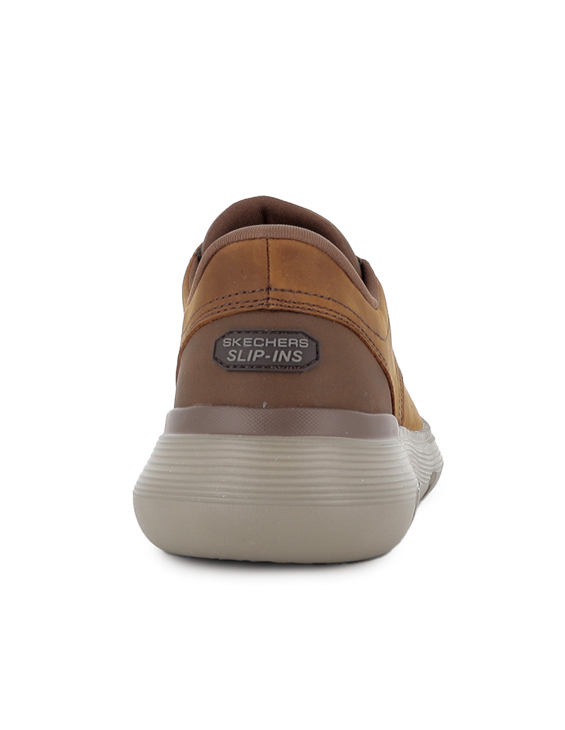 Zapato piel cordon elastico plantilla Memory Foam hombre marron. Zapato de tipo clasico fabricado en piel con cierre mediante cordones elasticos que incluye plantilla Memory Foam y sistemas de amortiguación de la pisada para mejorar sujeción. Zapatos comodos, basicos para cualquier dia. SKECHERS es la marca de calzado deportivo cómoda por excelencia. Su diseño centrado en el confort y la buena relación calidad-precio es lo que hace que esta marca sea una de las más buscadas entre hombres y mujeres de todas las edades y estilos.