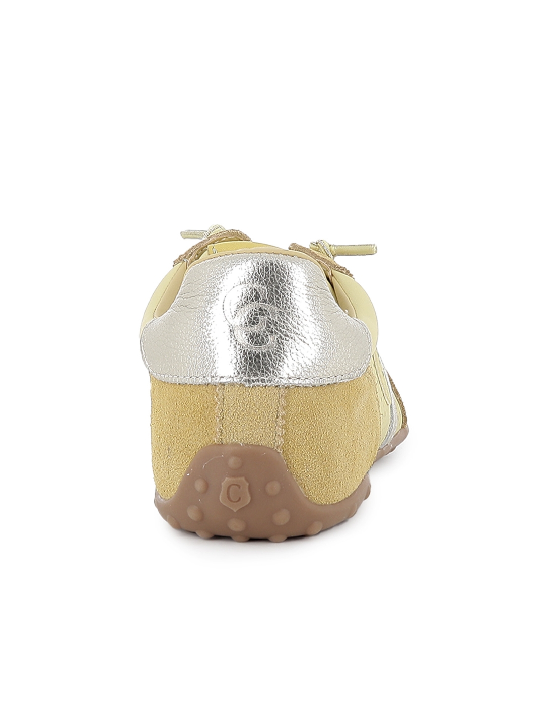 Deportivas piel calada cordones elasticos piso fino mujer amarillo. Deportivas fabricadas en piel con diseño picados y cierre mediante cordones elasticos. Este modelo de deportivas destaca por su piso fino ultraligero de goma antideslizante y muy cómoda. Plantilla acolchada y extraíble. Es un calzado informal muy combinable, perfecta para todos los días. CARMELA es una marca nacional que se diferencian por ser expertos en calzado de piel de calidad, realizados de forma artesanal con materiales nobles, con personalidad, que siguen las últimas tendencias y que se adaptan al pie a la perfección. Su lema es: Lo trendy también puede ser cómodo.