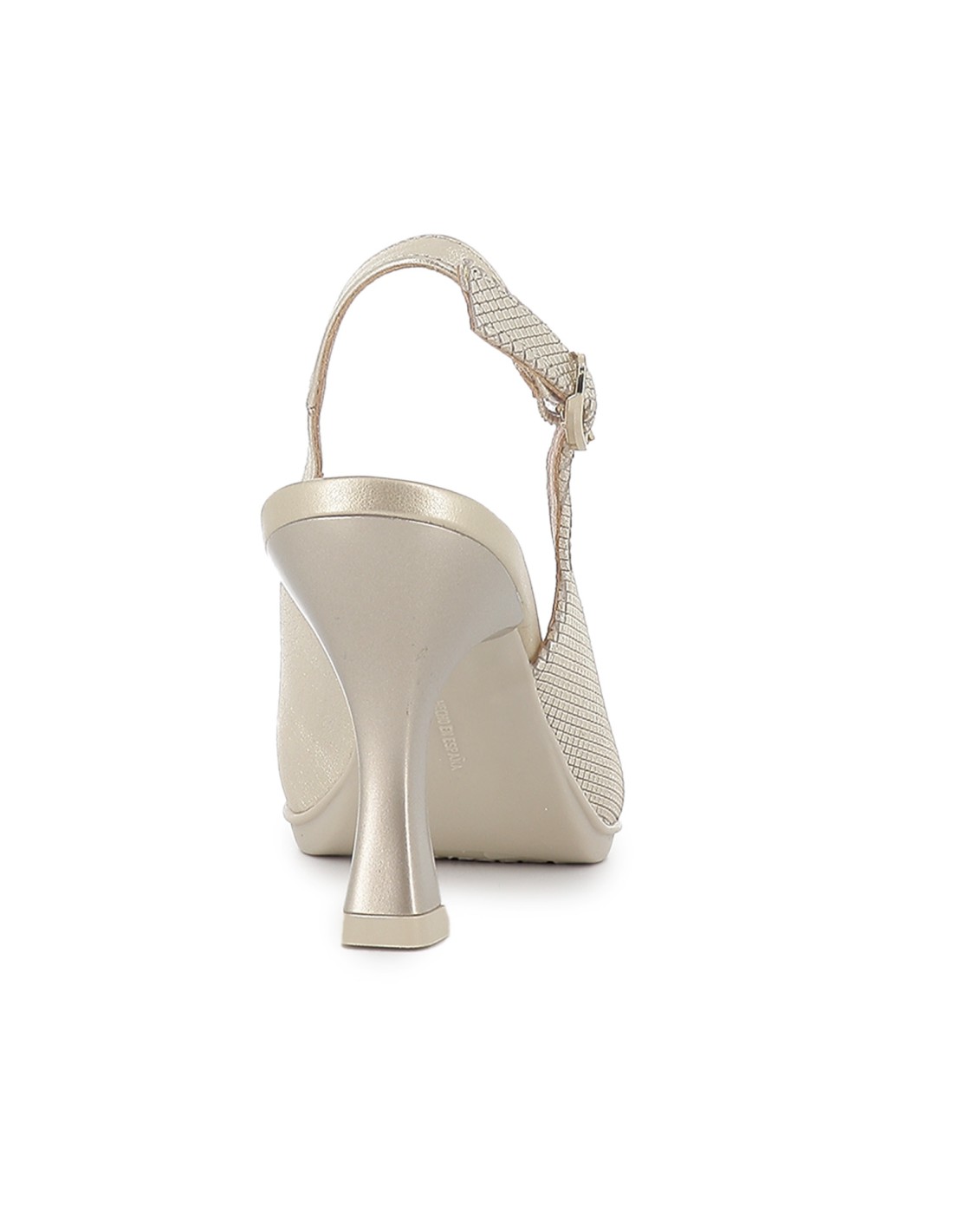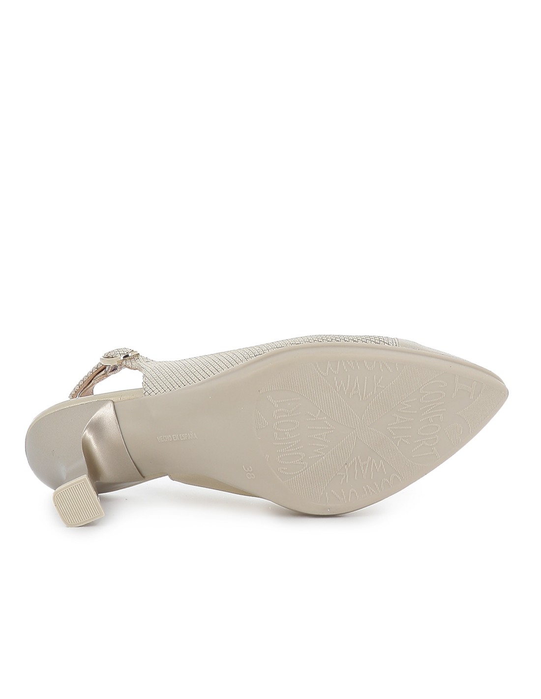 Zapato salon piel combi, hebilla y tacón mujer dorado. Zapato salon destalonado fabricado en piel combinada con cierre mediante hebilla en el talon. Incluye plantilla de piel. Tacon que resulta comodo. Zapatos destalonados perfectos para ocasiones especiales. DESIREÉ SHOES es una marca que diseña y fabrica 100 % en España, con una amplia trayectoria en el calzado para mujer. La comodidad y la moda siempre son sus metas: Pisos flexibles y cómodos, plantillas de gel, pieles suaves de gran calidad y diseños sobrios y versátiles que combinen con todas tus prendas y duren varias temporadas.