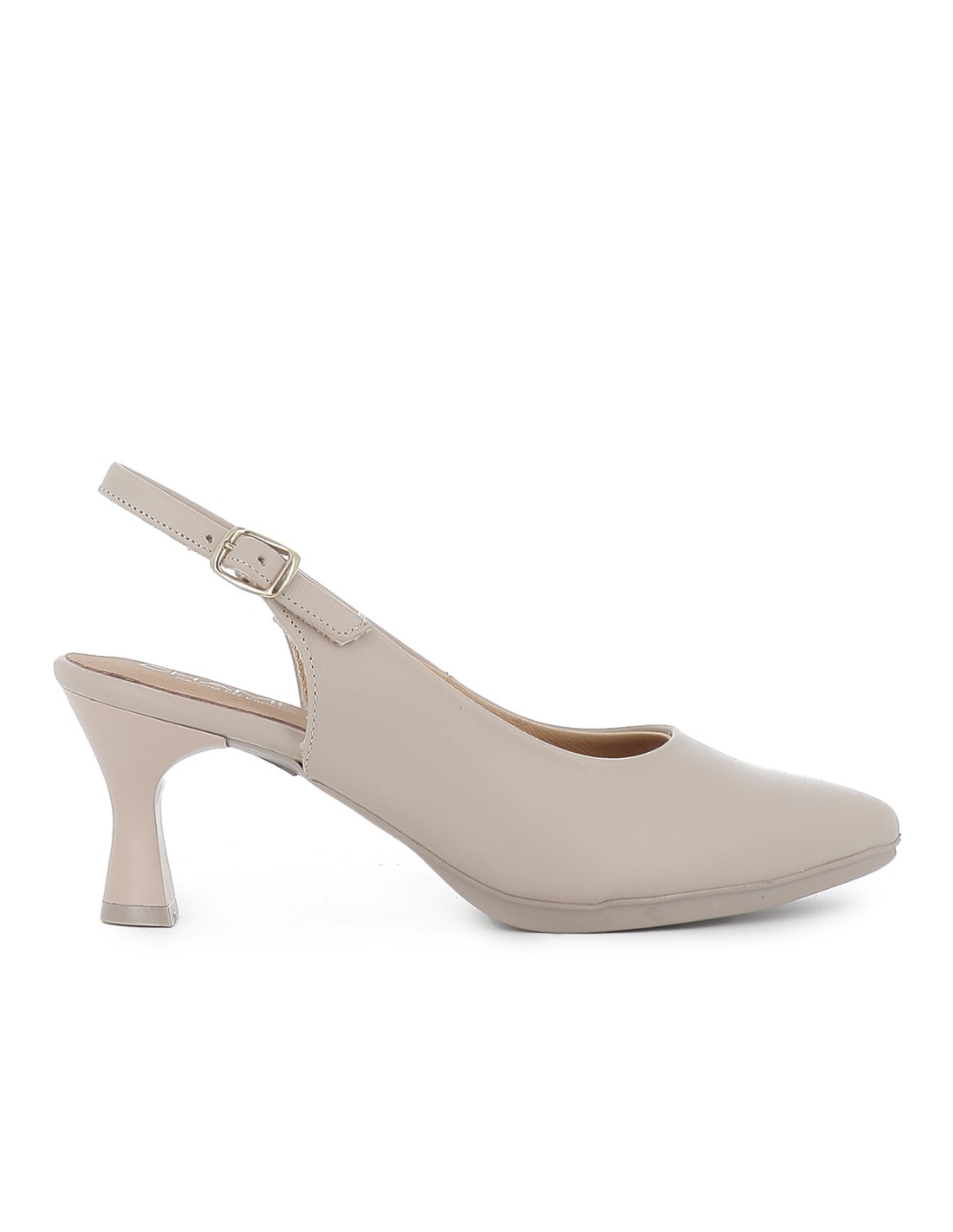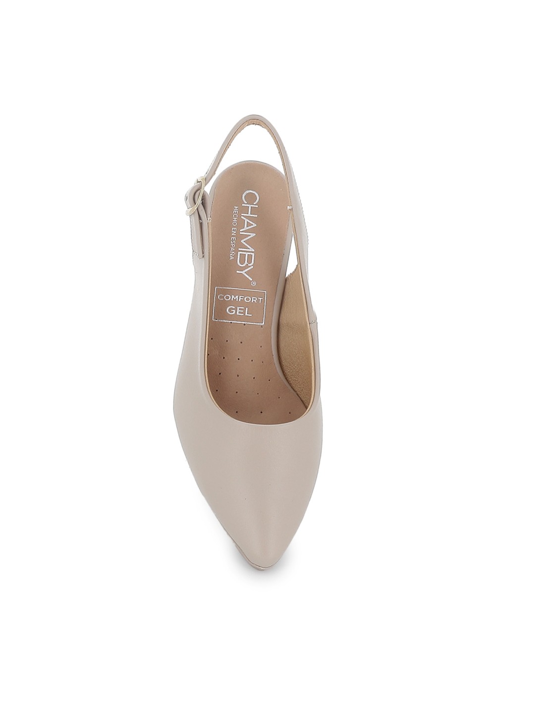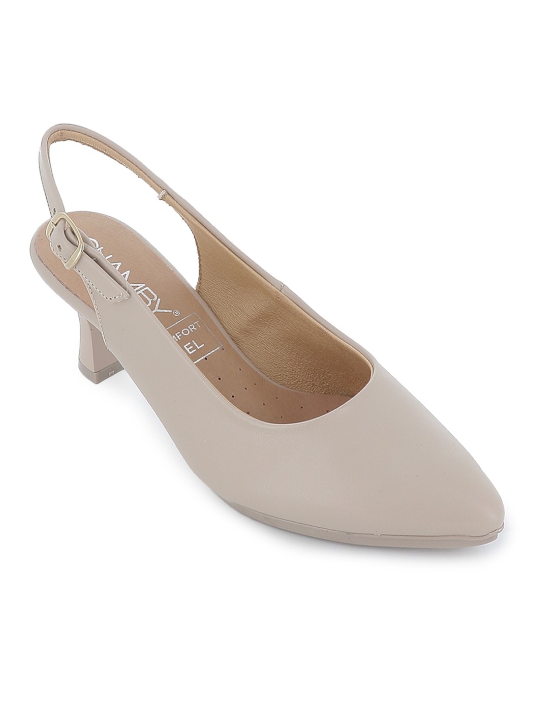 Salon piel destalonado con tacon medio mujer beige. Zapato salon destalonado fabricado en piel con cierre mediante hebilla en el talón y con tacon medio tipo carrete. Incluye plantilla de piel acolchada. Unos zapatos de vestir que te ayudaran a ir cómoda y elegante en eventos Chamby es una marca con fabricación y diseño en España que se centra en el uso de las pieles como principal material en sus creaciones. La versatilidad es el emblema de esta marca que no se limita a ningún estilo concreto. Sea cual sea tu objetivo, Chamby tiene el zapato perfecto para ti.
