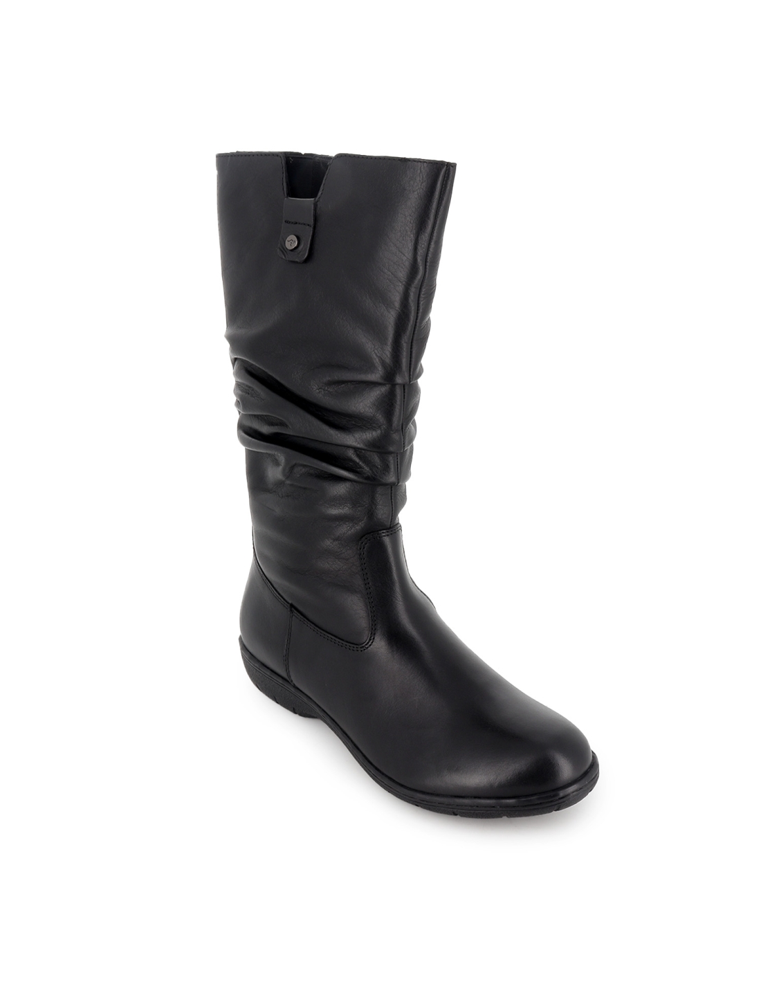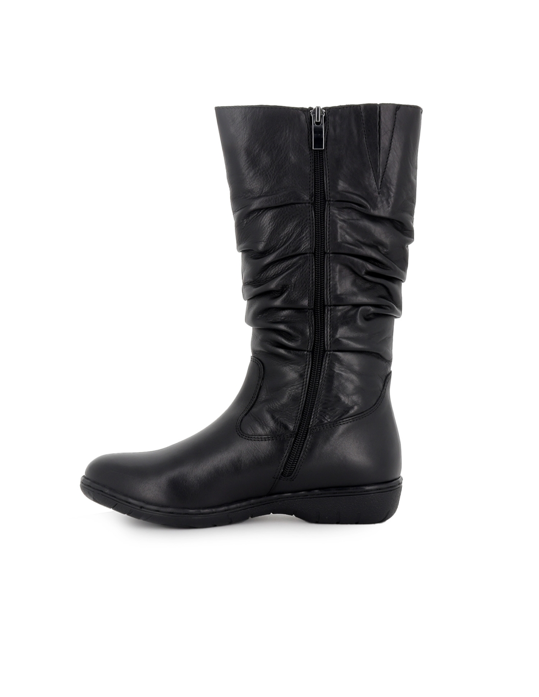 Bota piel caña arrugada cremallera cuña baja mujer negro. Bota fabricada en piel vacuno de primera calidad con diseño de caña arrugada y abertura con cierre mediante cremallera y elasticos para mejor retirada del zapato. Zapatos perfectos para cualquier dia. Kangaroos es una marca de calzado joven con fabricación 100% en España. Buscan ofrecer la máxima calidad al mejor precio con todos sus productos. Zapatos de estilo deportivo y urbano siguiendo las tendencias actuales.