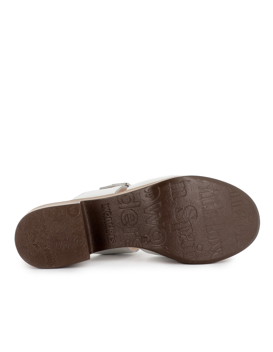 Zueco piel con hebilla y piso tipo madera mujer blanco. Zueco fabricado en piel con hebilla en el empeine para mayor ajuste y piso de tacon que imita madera. Zapatos bonitos, comodos y elegantes que elevan cualquier look. Plantilla de piel con MEMORY GEL (plantilla de gel con efecto memoria que no se deforma) una tecnología exclusiva para amortiguar la pisada. La suela pertenece a la colección más ligera WONDERS FLY: Tecnología ultra light que hará que camines sobre una nube. Nunca has probado un zapato tan ligero y cómodo. WONDERS es una marca que diseña y fabrica 100% en España. Sus zapatos son ligeros, ergonómicos, cómodos, resistentes y combinables para multitud de ocasiones de tu vida diaria. Sus valores se basan en la cuidar la calidad de los materiales y en la importancia de los trabajadores y de todos y cada uno de los procesos que intervienen en la creación del calzado.